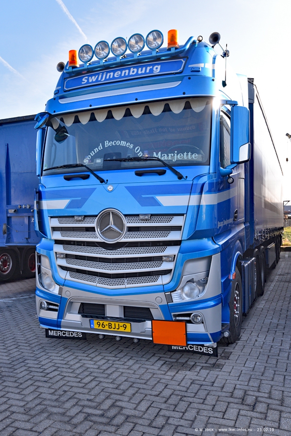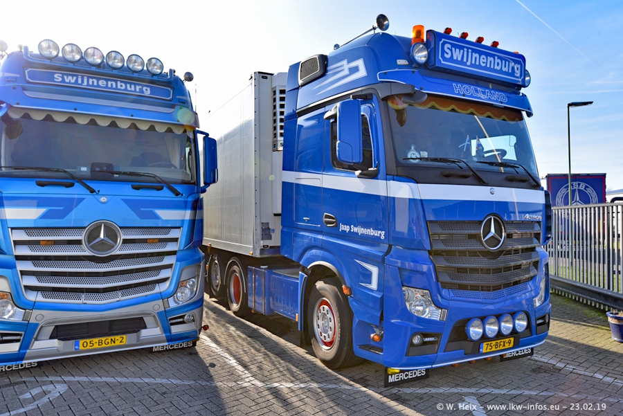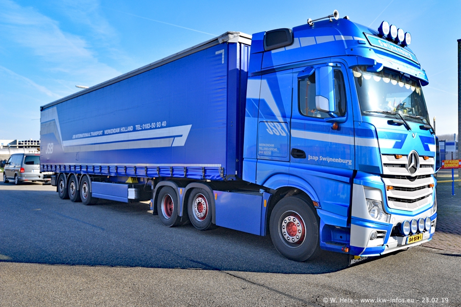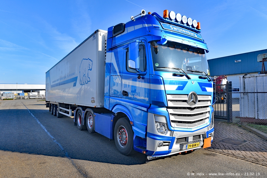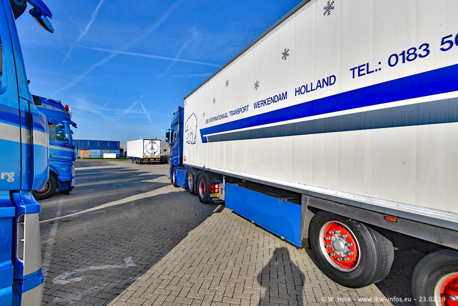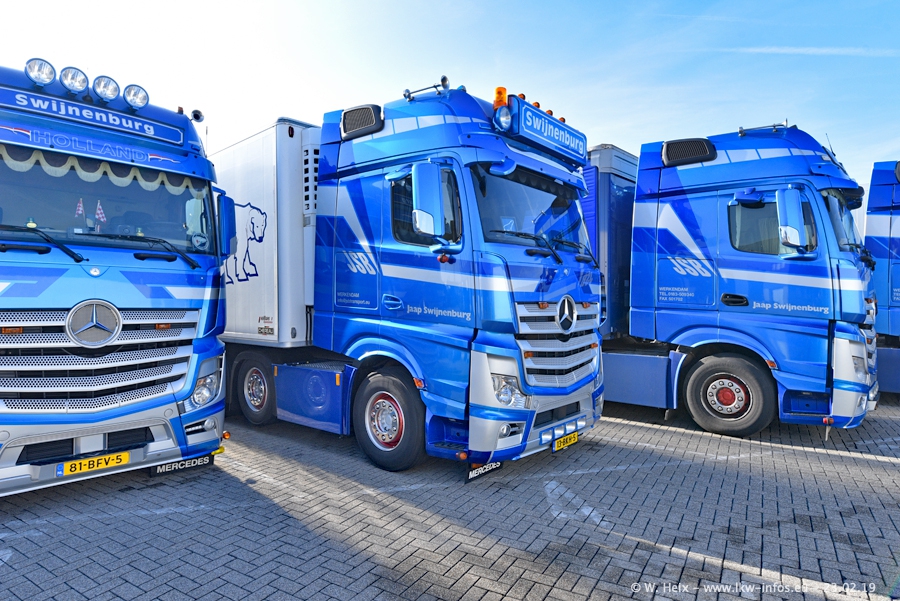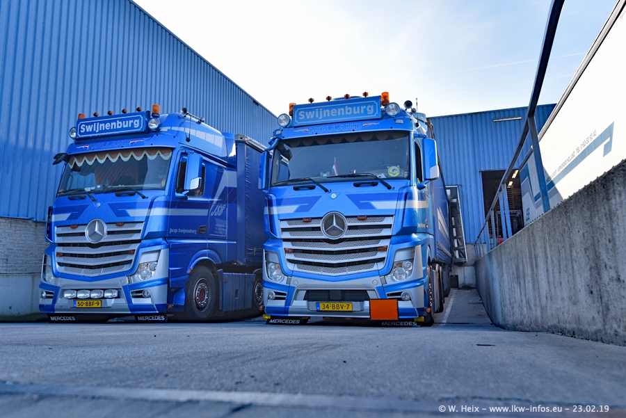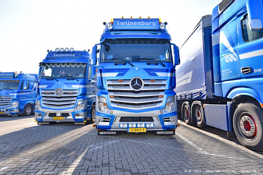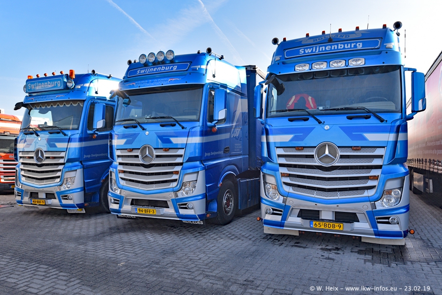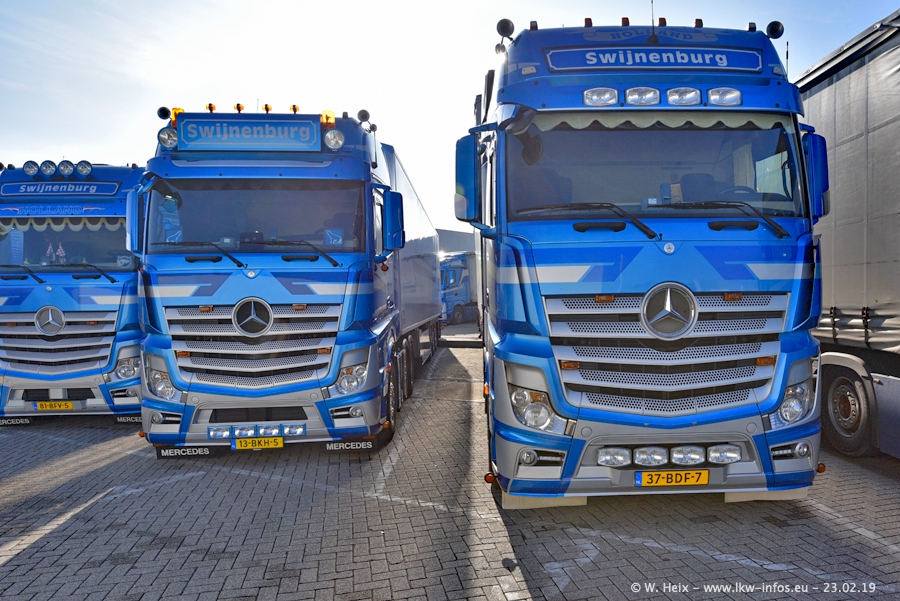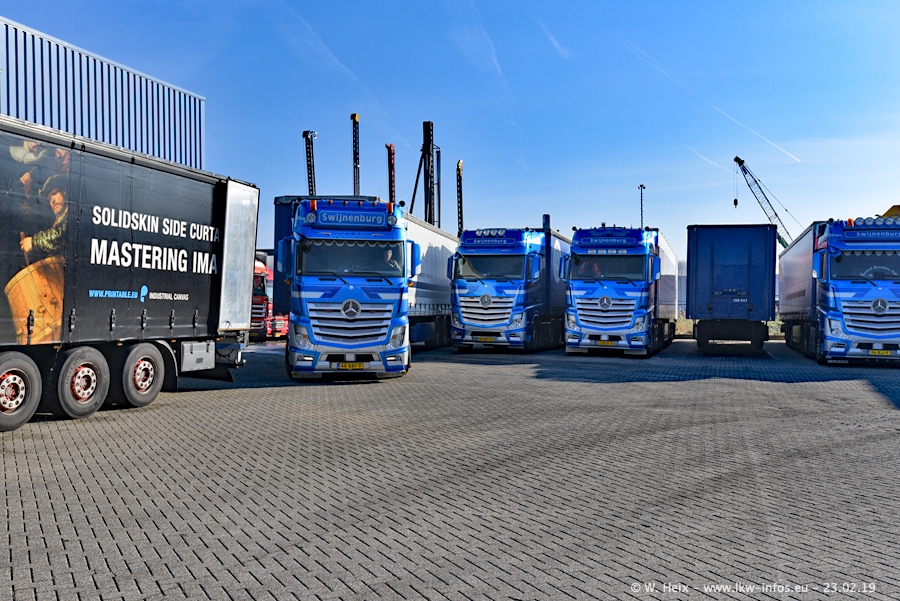 Mein letzter Besuch bei JSB Swijnenburg war im Jahr 2014. In den letzten fünf Jahren hat sich entsprechend viel verändert im Fuhrpark, der aus ca. 30 LKW besetht. Das sind ausschließlich Zugmaschinen der Actros-Baureihe. Inzwischen sind das fast alles Actros 4. Dazu kommt noch ein SK 1948 der ersten Generation, der vor ca. 5-6 Jahren restauriert wurde. Ob diese Zugmaschine noch eingesetzt wird, weiß ich nicht. Der SK stand beim Besuch ganz vorne in der Reihe vor den ganzen Actros.
