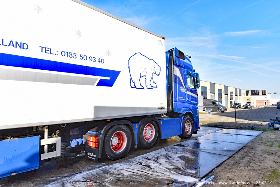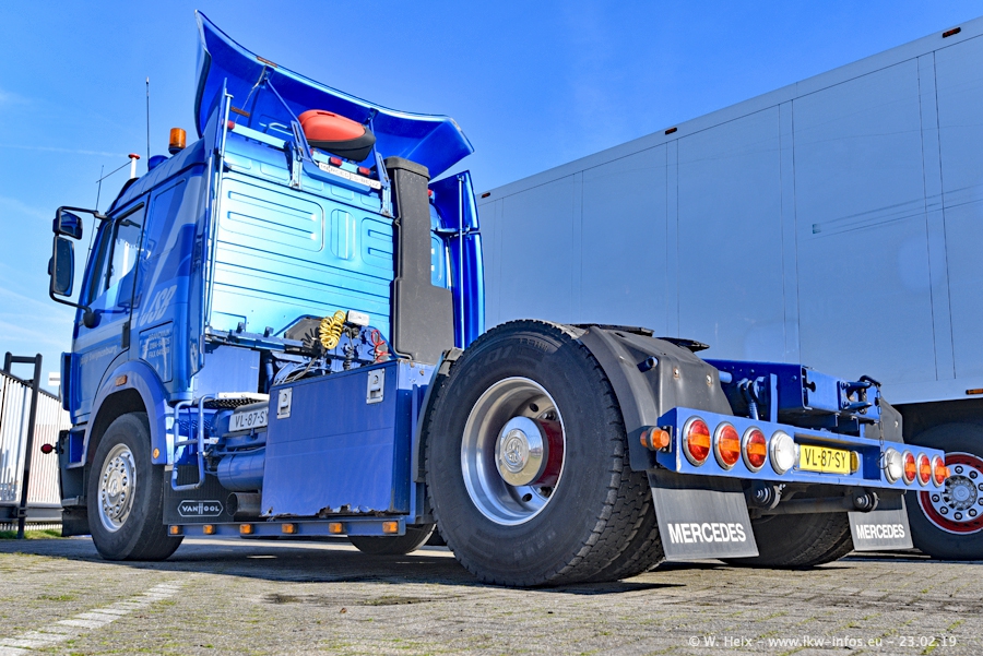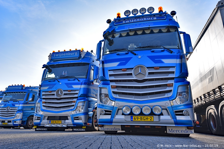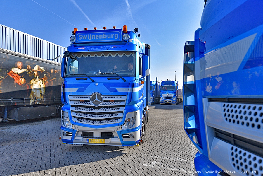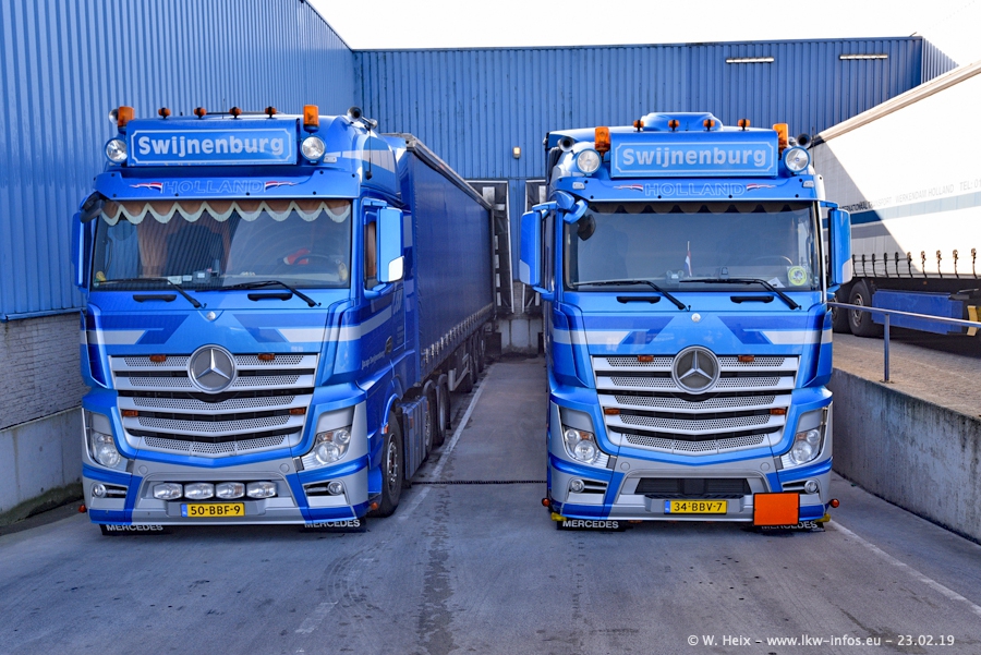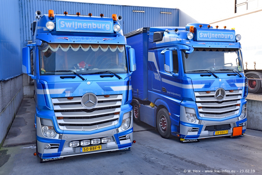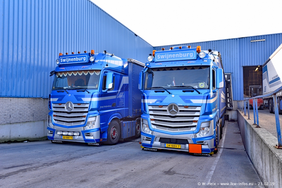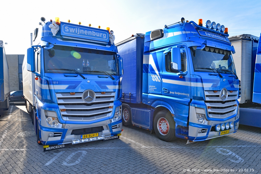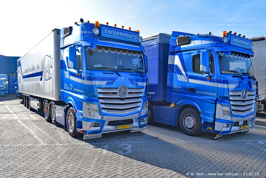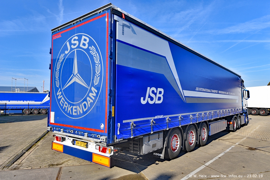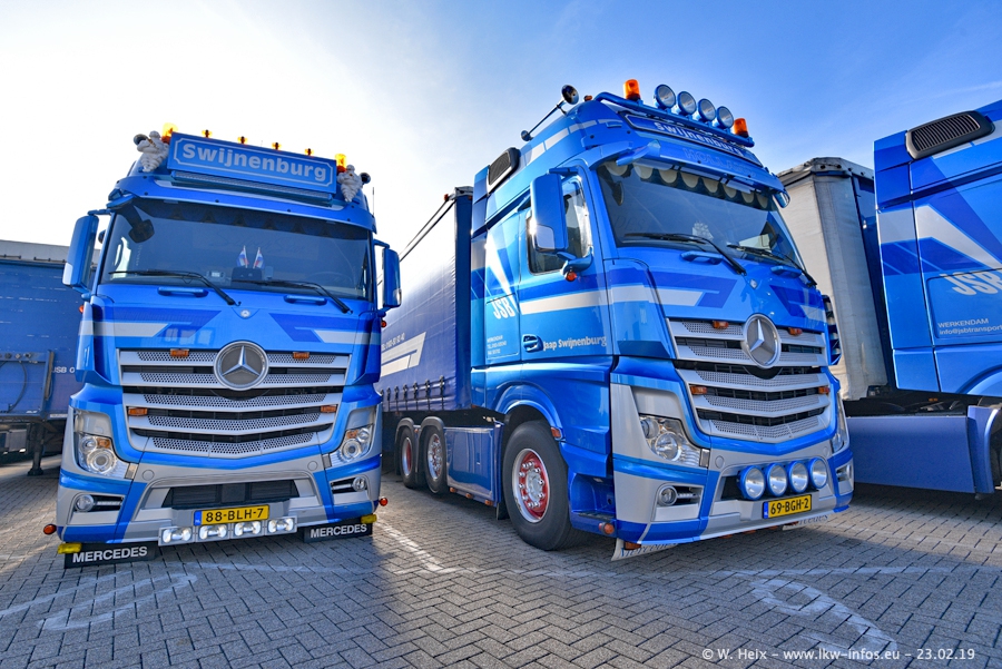 Mein letzter Besuch bei JSB Swijnenburg war im Jahr 2014. In den letzten fünf Jahren hat sich entsprechend viel verändert im Fuhrpark, der aus ca. 30 LKW besetht. Das sind ausschließlich Zugmaschinen der Actros-Baureihe. Inzwischen sind das fast alles Actros 4. Dazu kommt noch ein SK 1948 der ersten Generation, der vor ca. 5-6 Jahren restauriert wurde. Ob diese Zugmaschine noch eingesetzt wird, weiß ich nicht. Der SK stand beim Besuch ganz vorne in der Reihe vor den ganzen Actros.