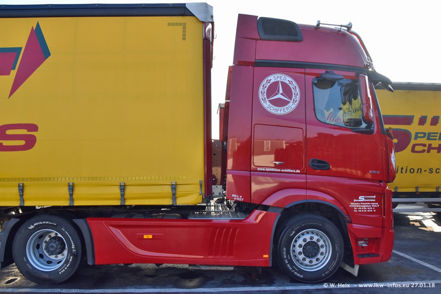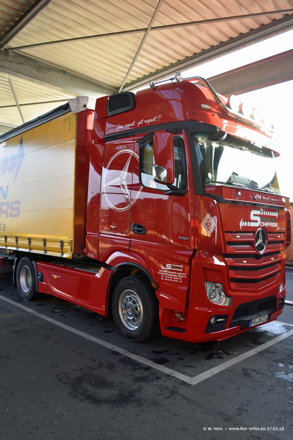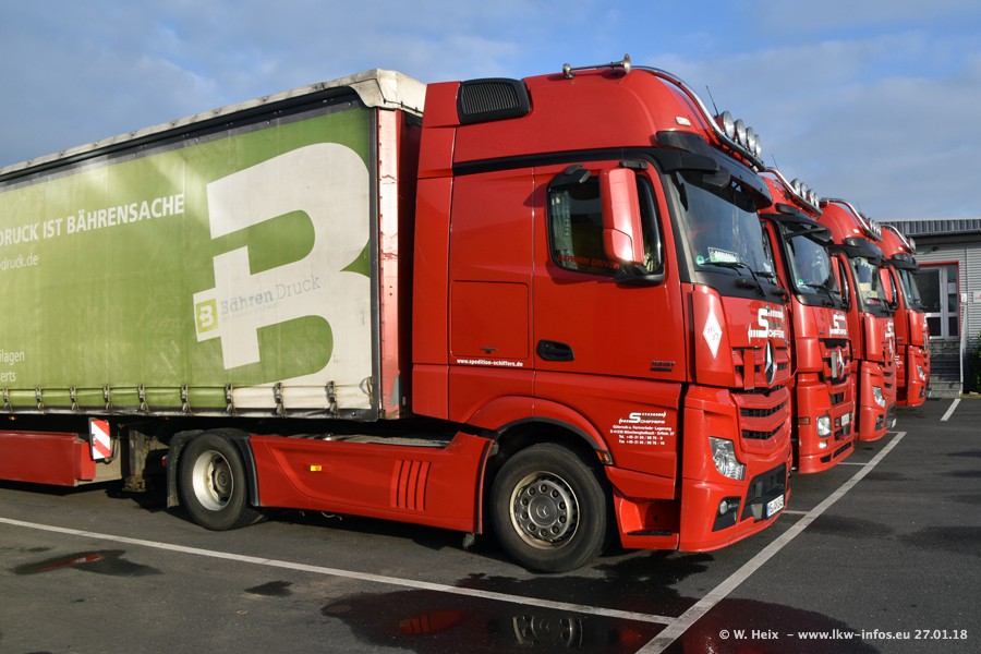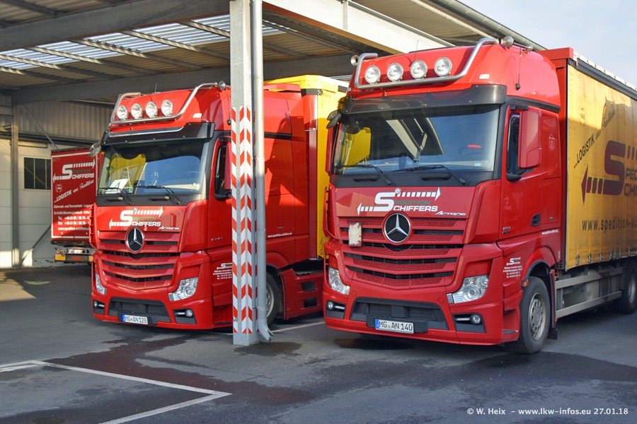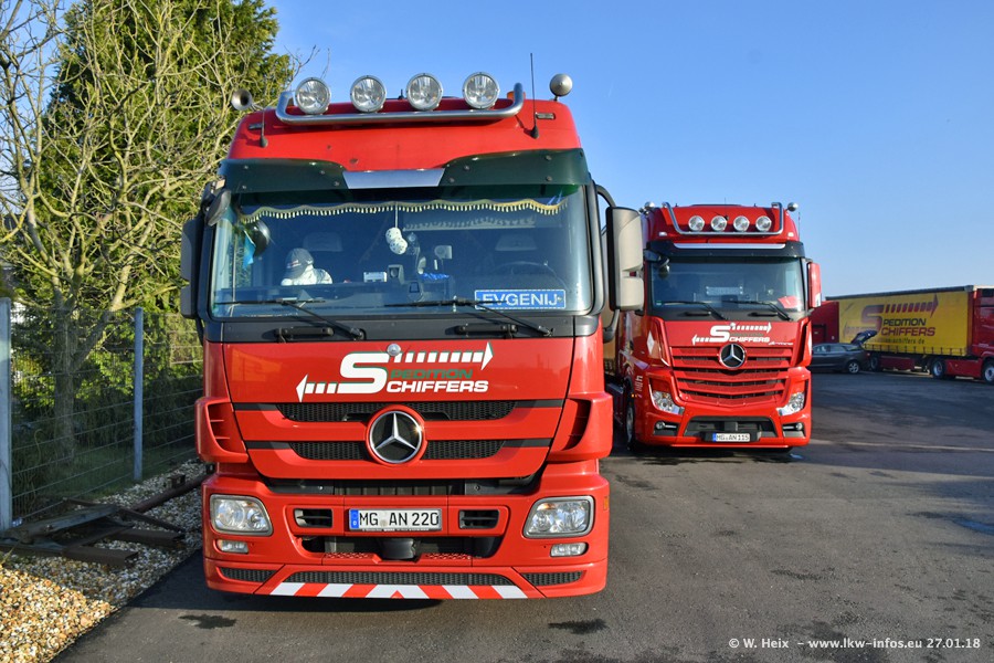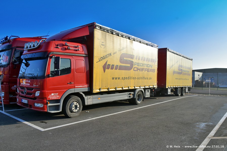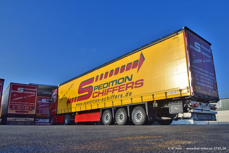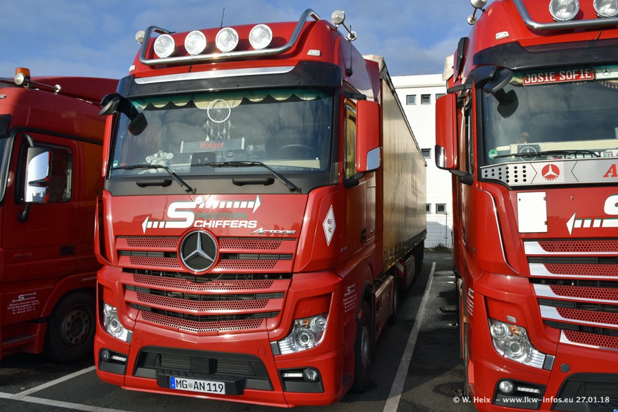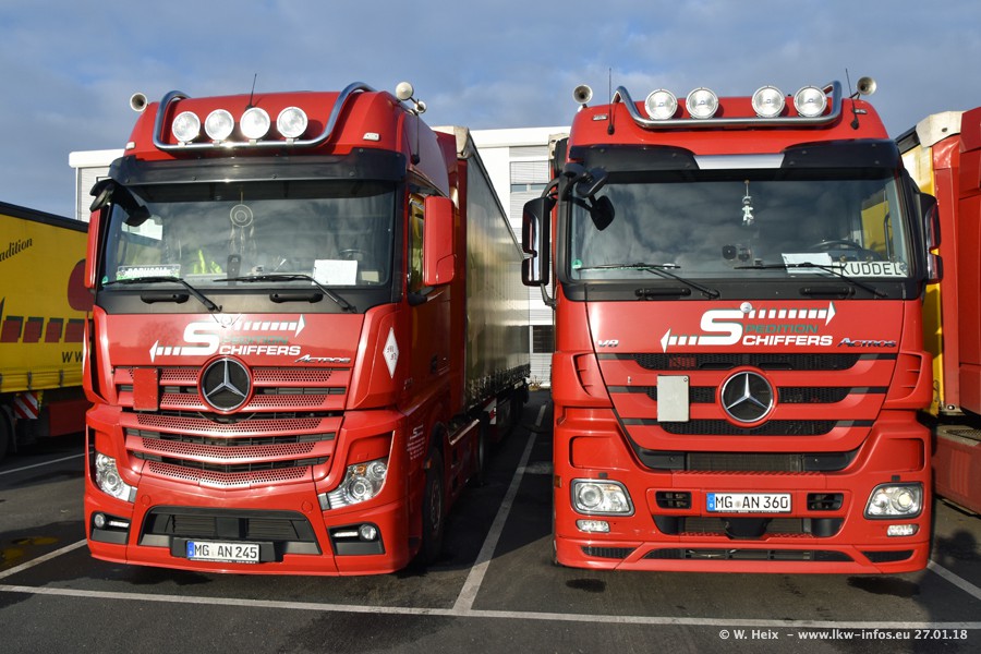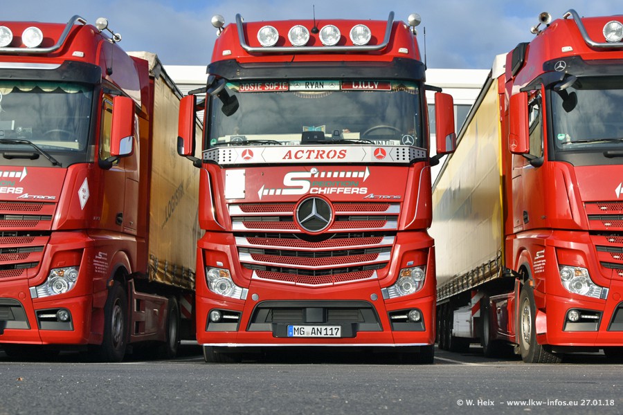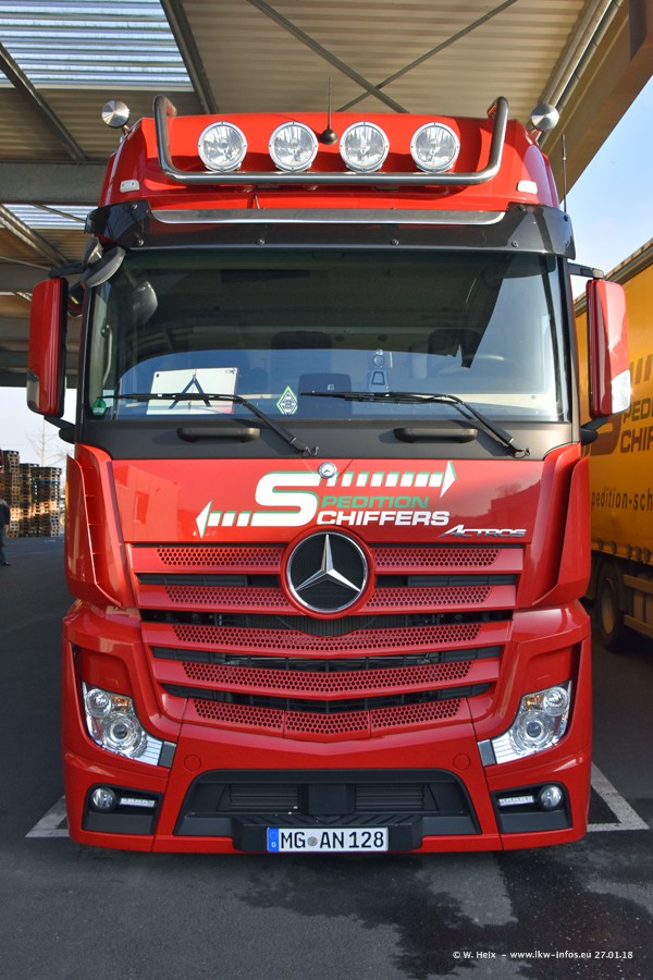 Heute war ich zum ersten Mal bei Schiffers in Mönchengladbach. Es gibt insgesamt 28 LKW, alle von Mercedes-Benz. Im Fernverkehr sind überwiegend Actros 4 im Einsatz. Im Nahverkehr werden überwiegend Mercedes-Benz der Baureihen Actros MP2 und Actros 3 eingesetzt.