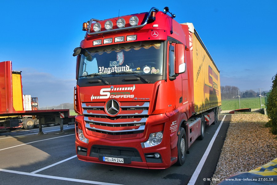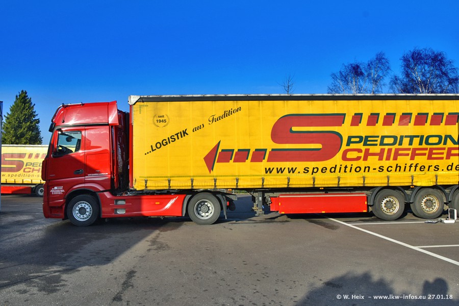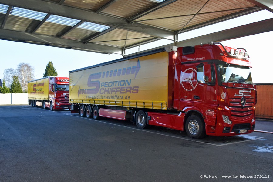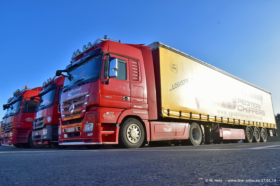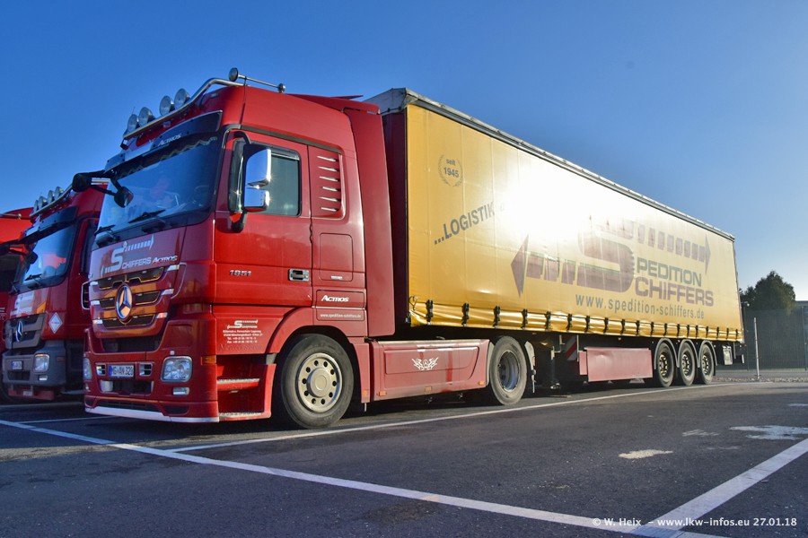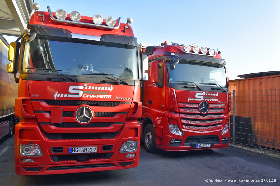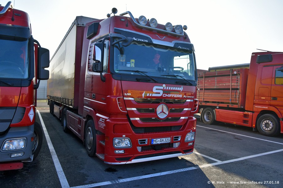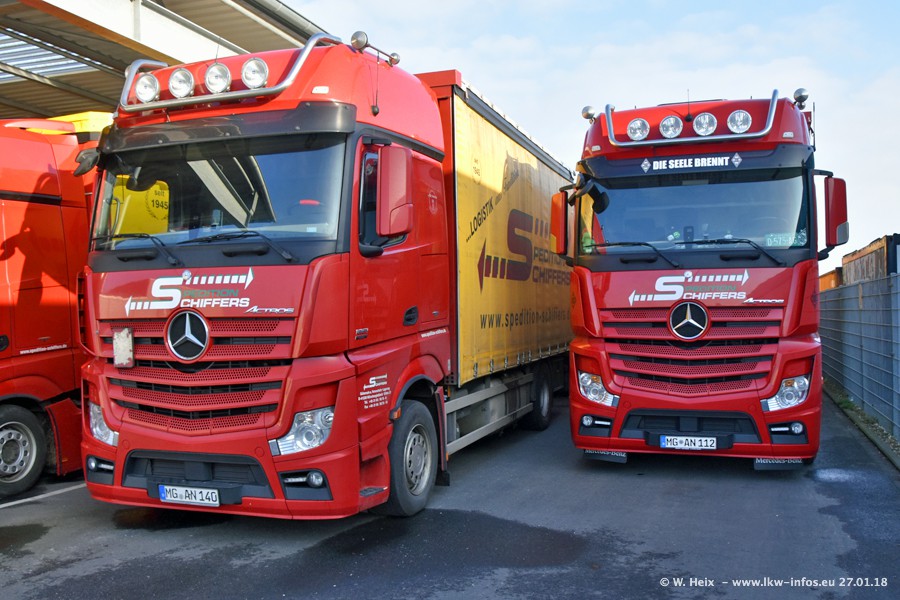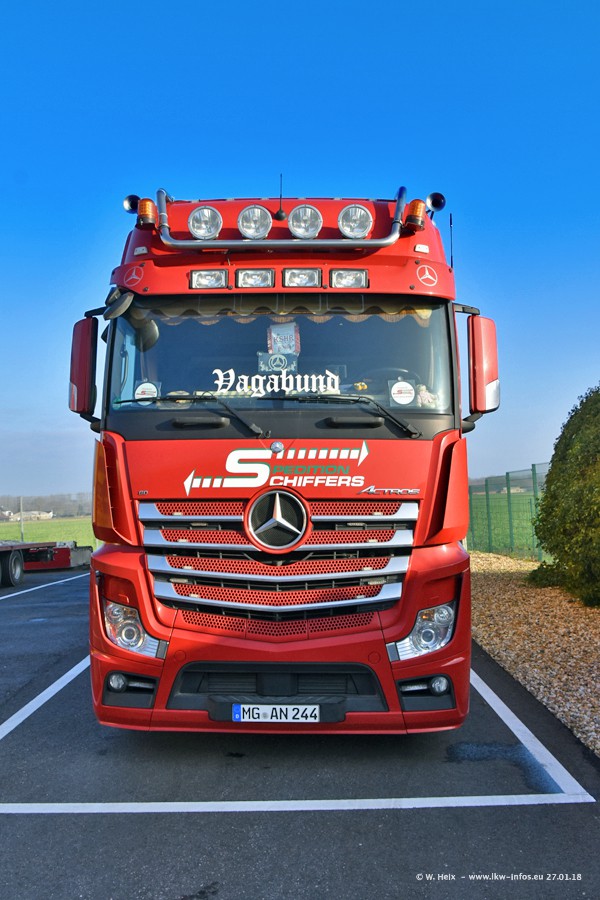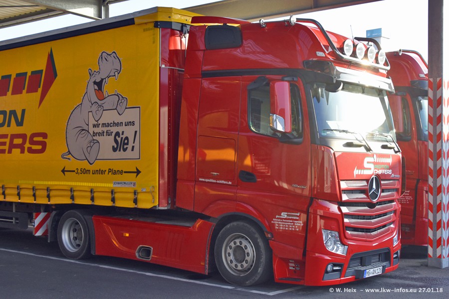 Heute war ich zum ersten Mal bei Schiffers in Mönchengladbach. Es gibt insgesamt 28 LKW, alle von Mercedes-Benz. Im Fernverkehr sind überwiegend Actros 4 im Einsatz. Im Nahverkehr werden überwiegend Mercedes-Benz der Baureihen Actros MP2 und Actros 3 eingesetzt.
