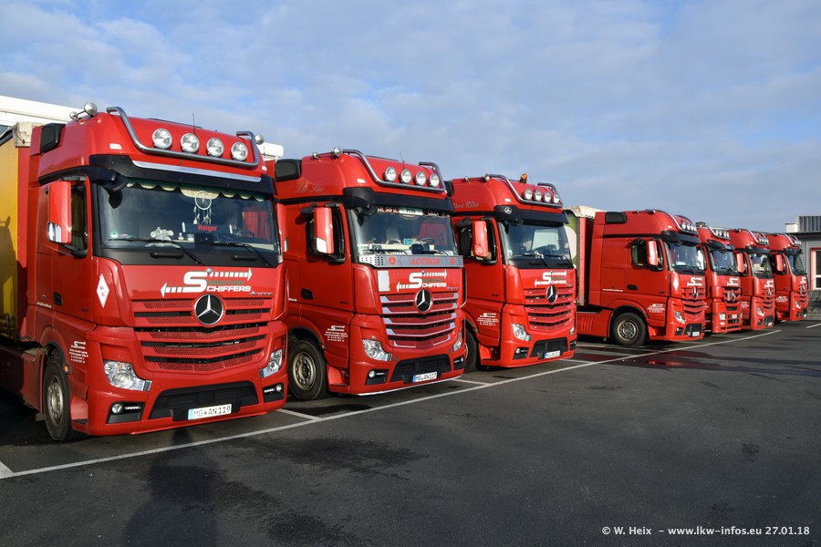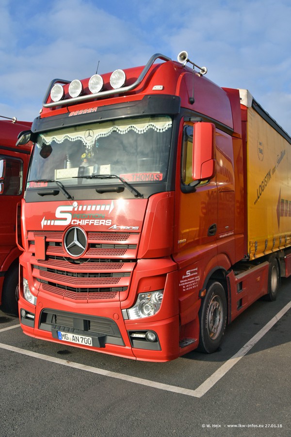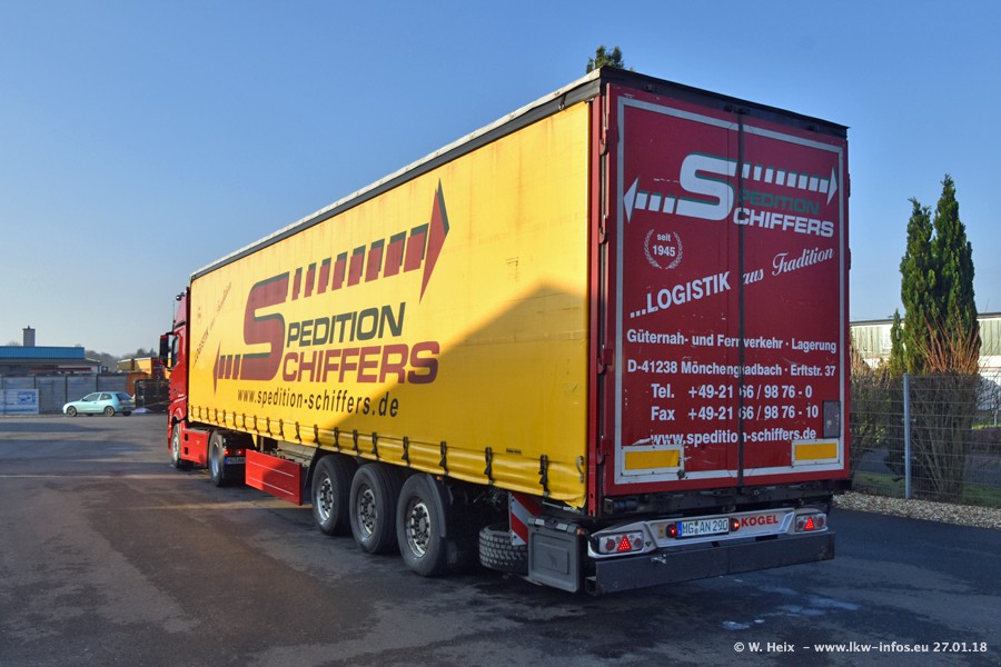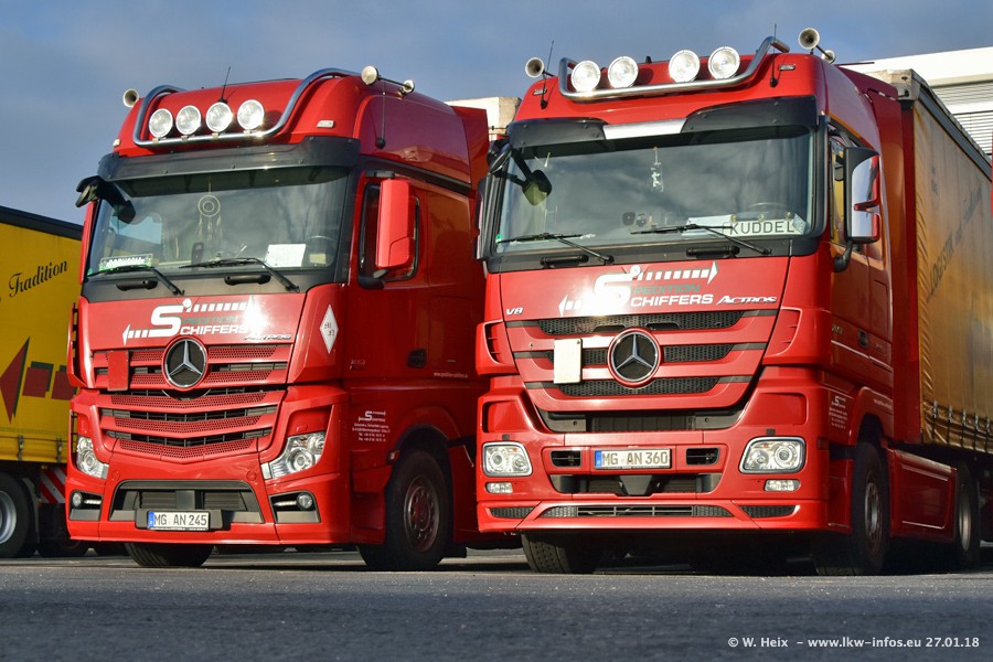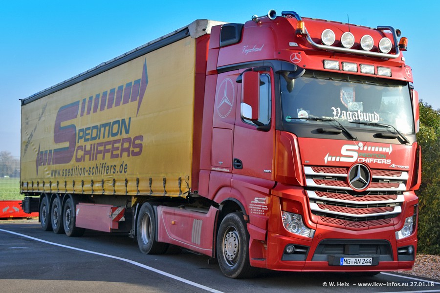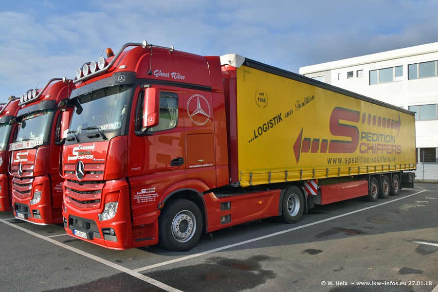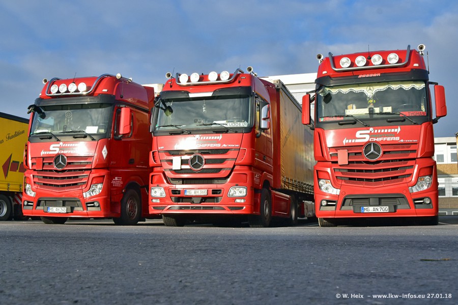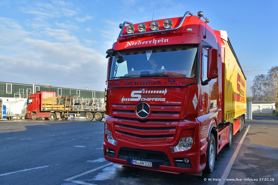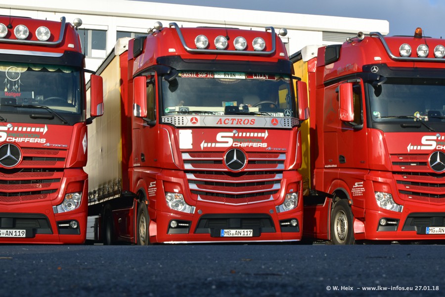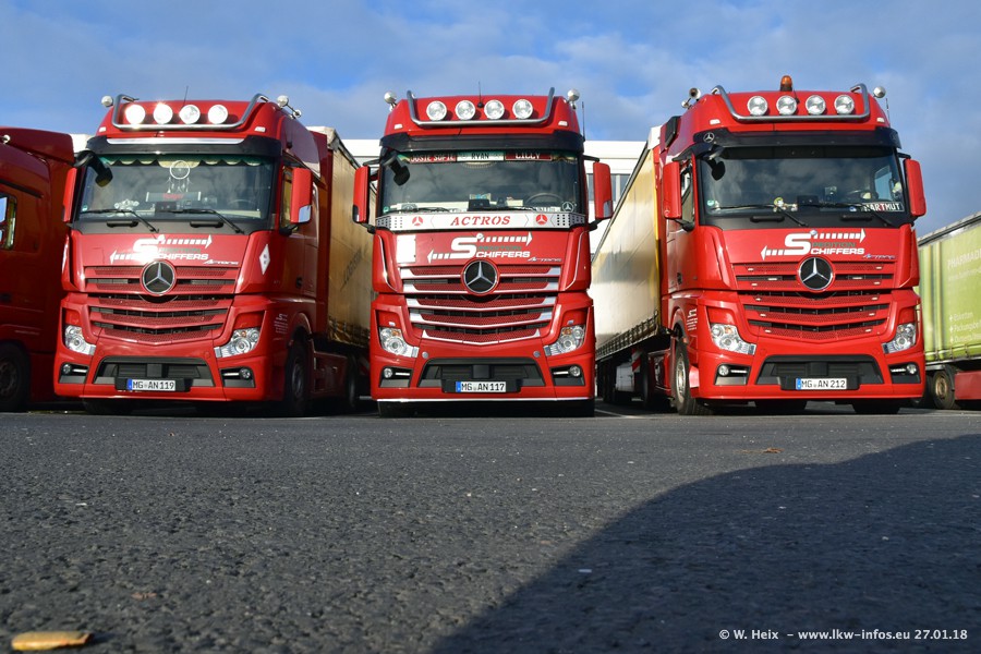 Heute war ich zum ersten Mal bei Schiffers in Mönchengladbach. Es gibt insgesamt 28 LKW, alle von Mercedes-Benz. Im Fernverkehr sind überwiegend Actros 4 im Einsatz. Im Nahverkehr werden überwiegend Mercedes-Benz der Baureihen Actros MP2 und Actros 3 eingesetzt.