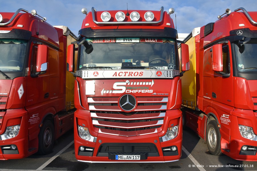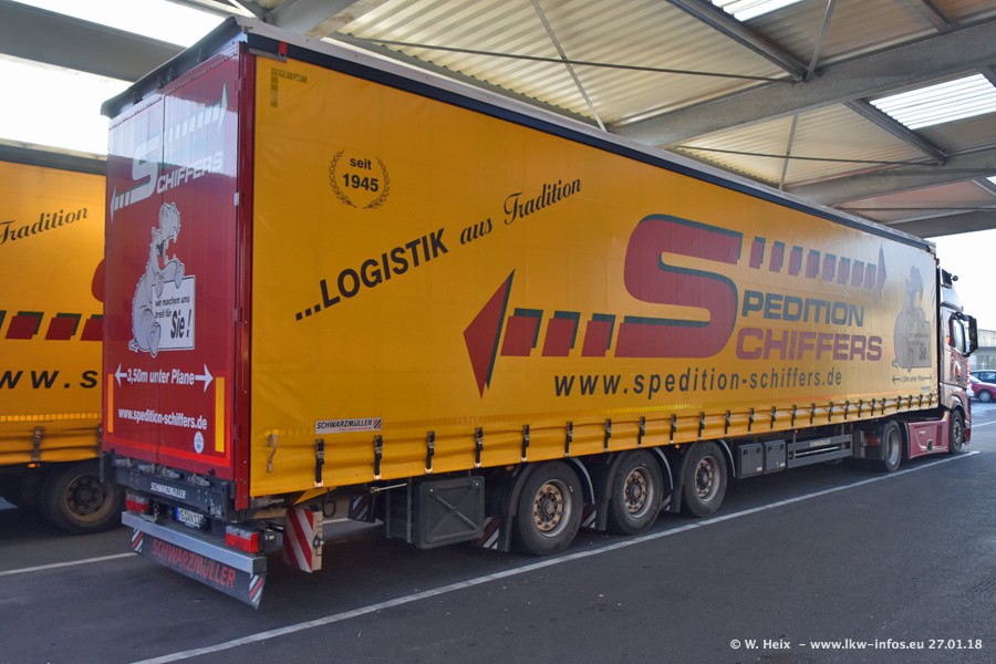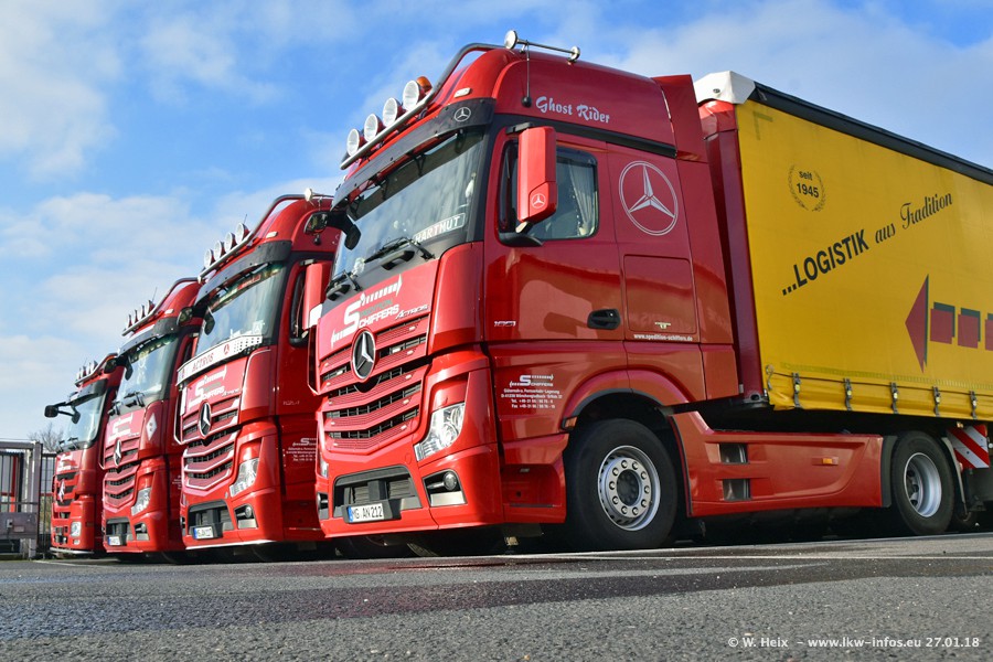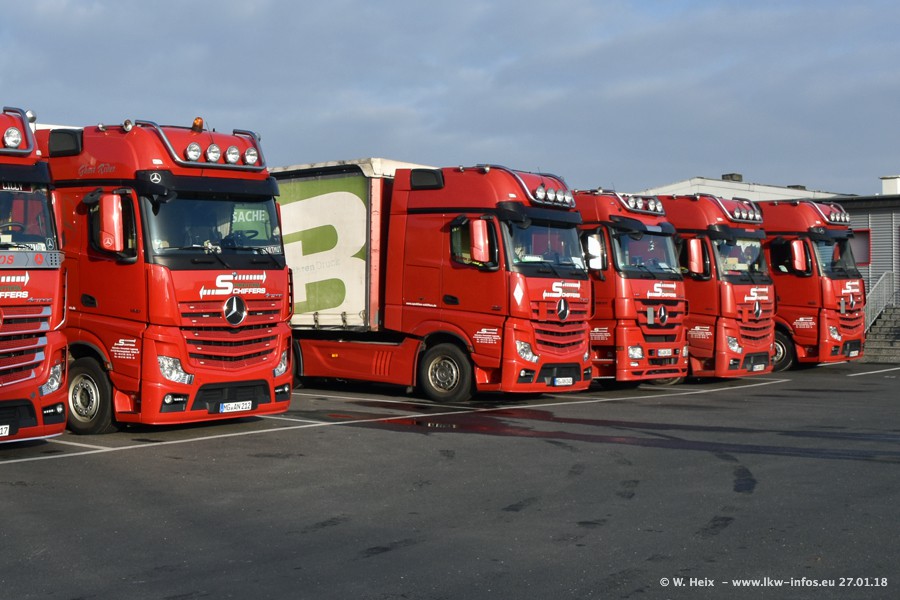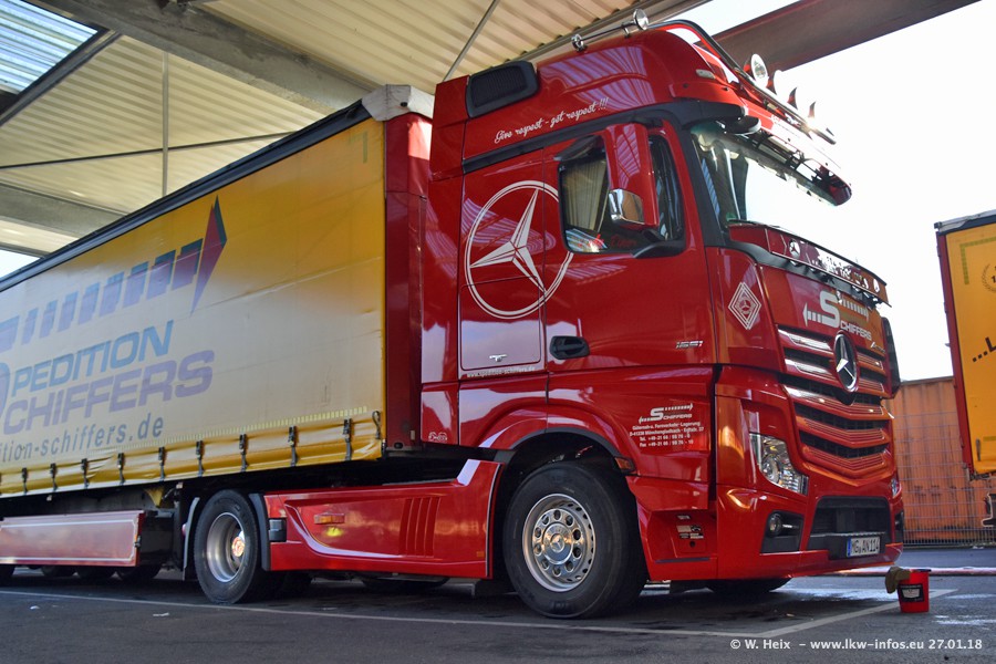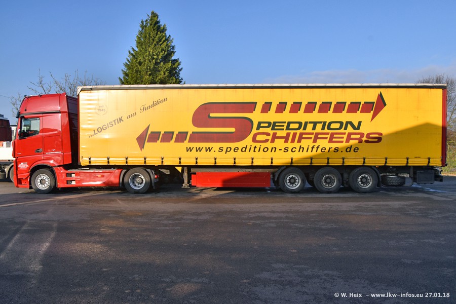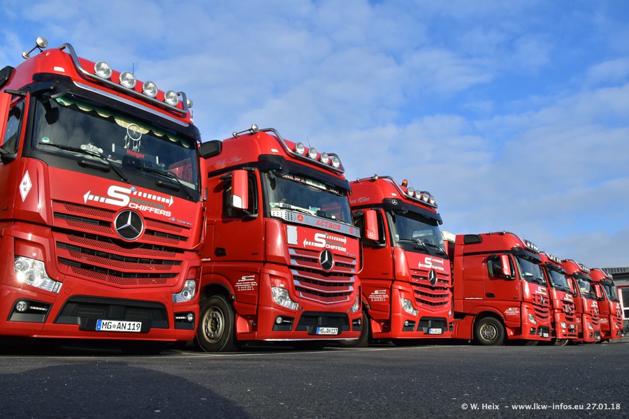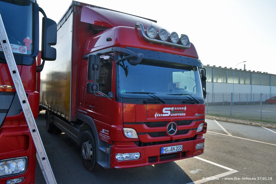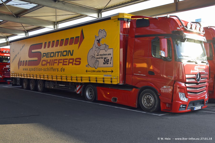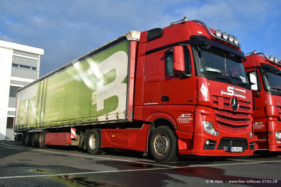 Heute war ich zum ersten Mal bei Schiffers in Mönchengladbach. Es gibt insgesamt 28 LKW, alle von Mercedes-Benz. Im Fernverkehr sind überwiegend Actros 4 im Einsatz. Im Nahverkehr werden überwiegend Mercedes-Benz der Baureihen Actros MP2 und Actros 3 eingesetzt.