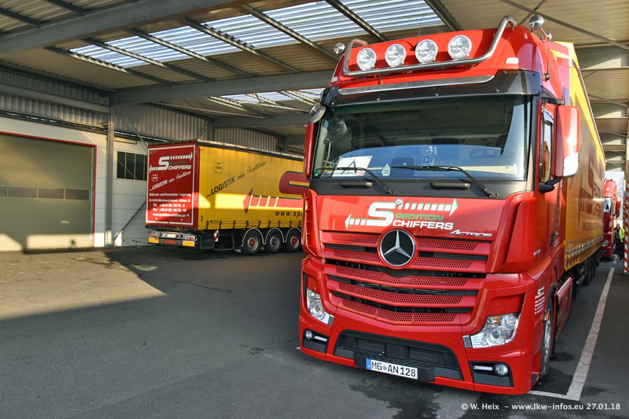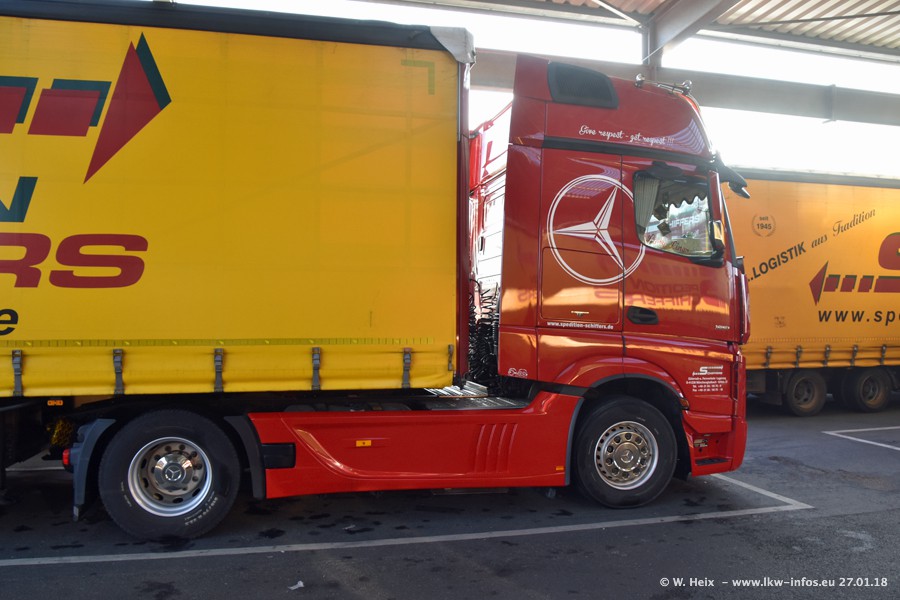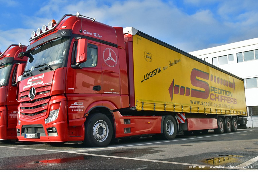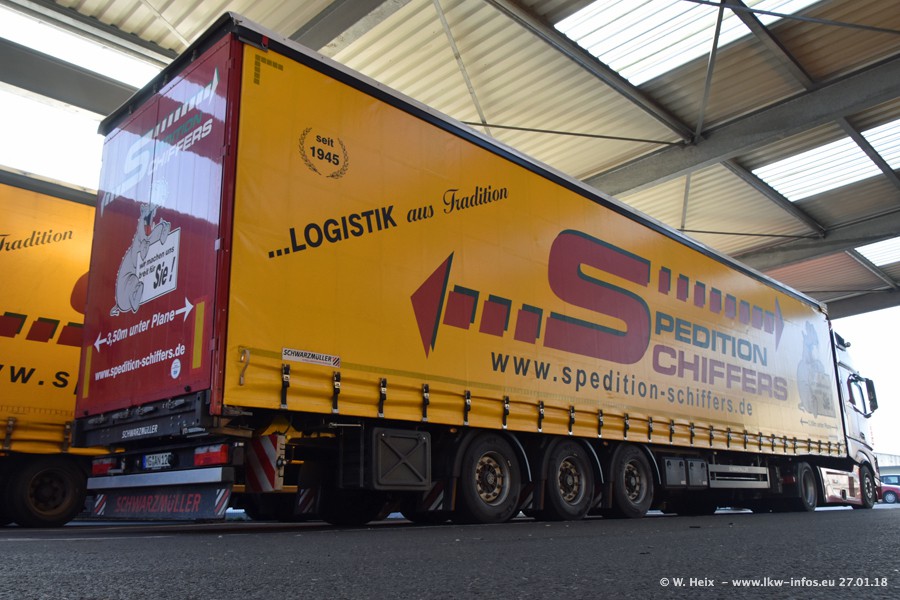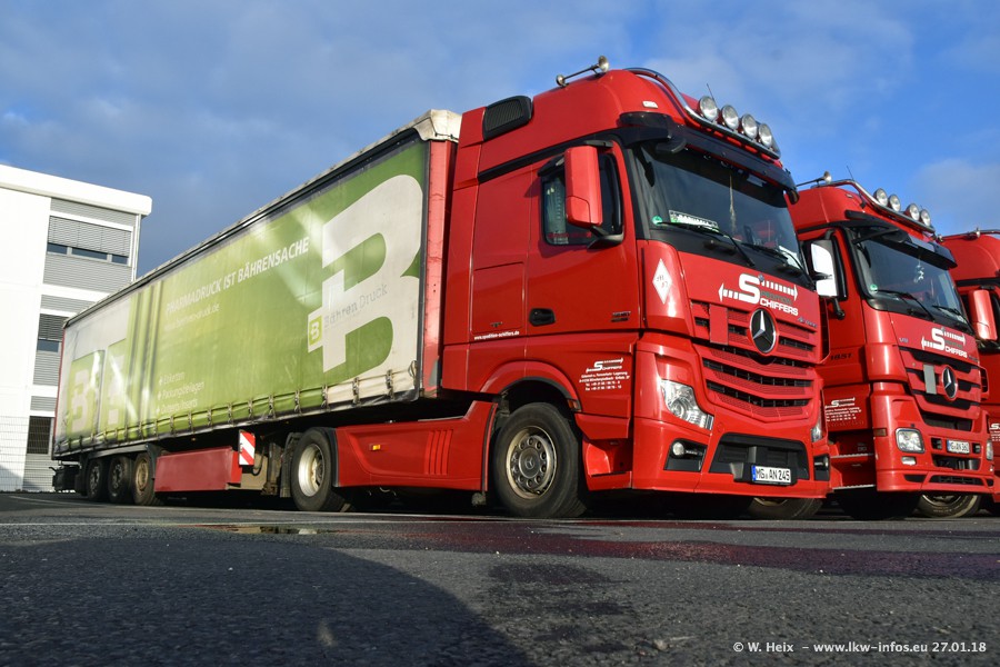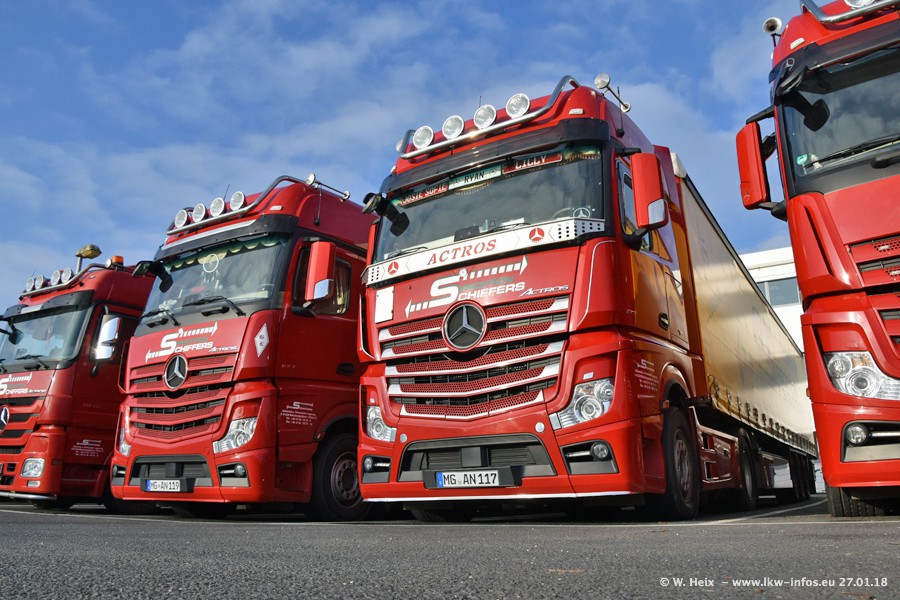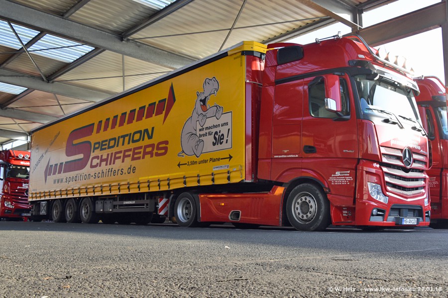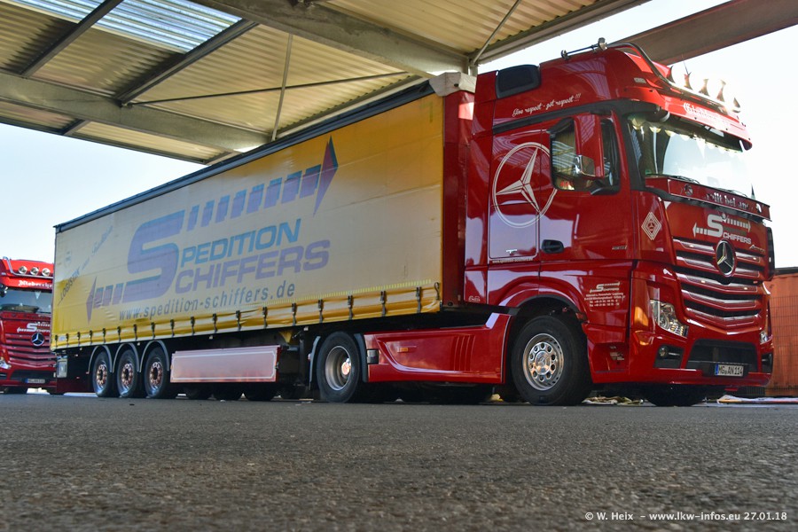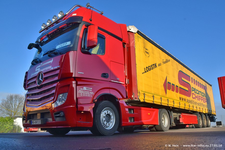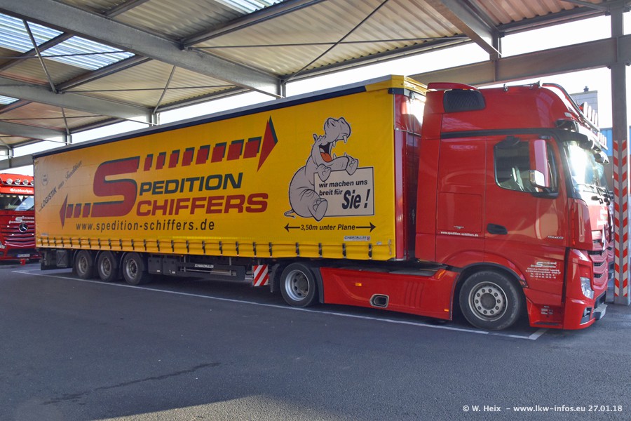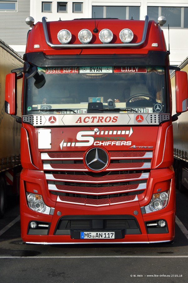 Heute war ich zum ersten Mal bei Schiffers in Mönchengladbach. Es gibt insgesamt 28 LKW, alle von Mercedes-Benz. Im Fernverkehr sind überwiegend Actros 4 im Einsatz. Im Nahverkehr werden überwiegend Mercedes-Benz der Baureihen Actros MP2 und Actros 3 eingesetzt.