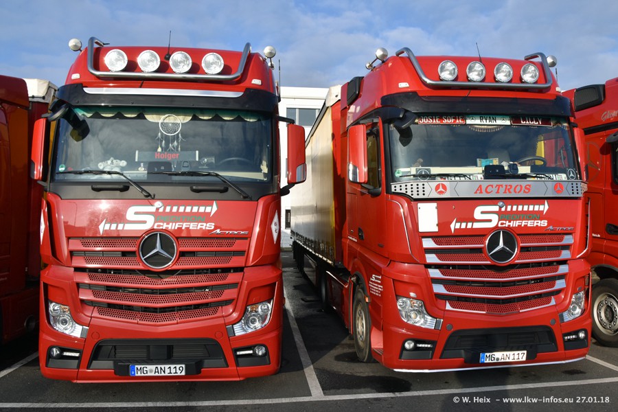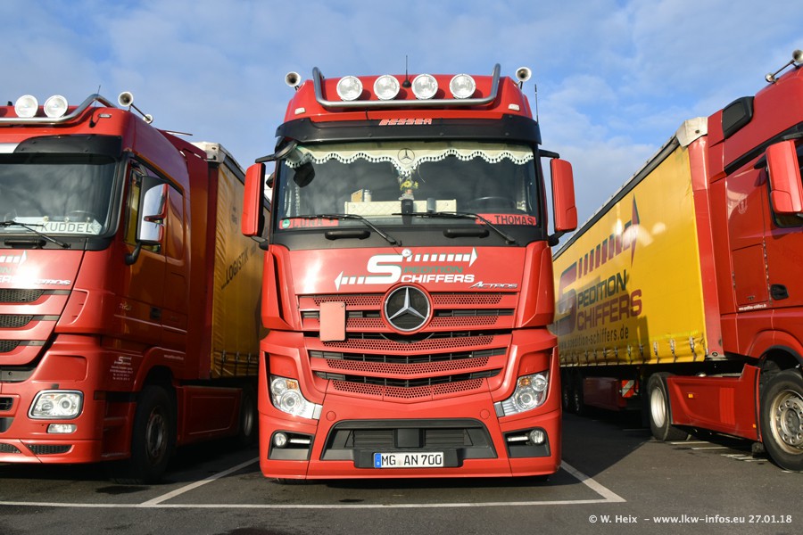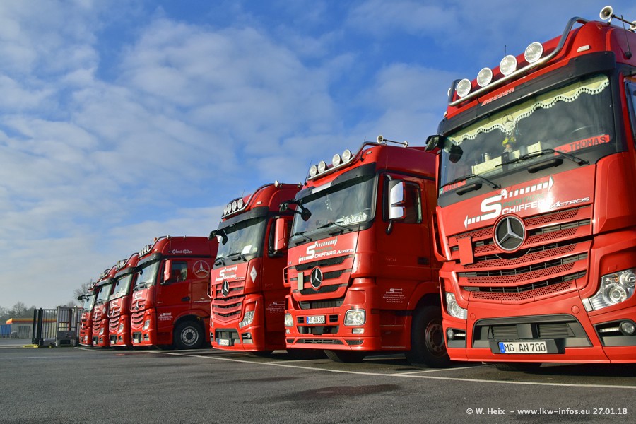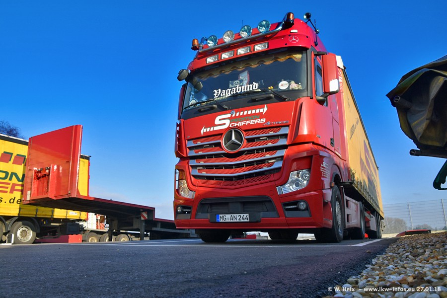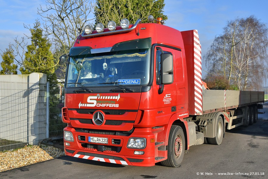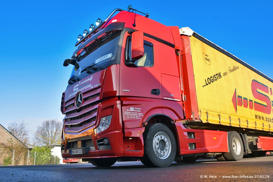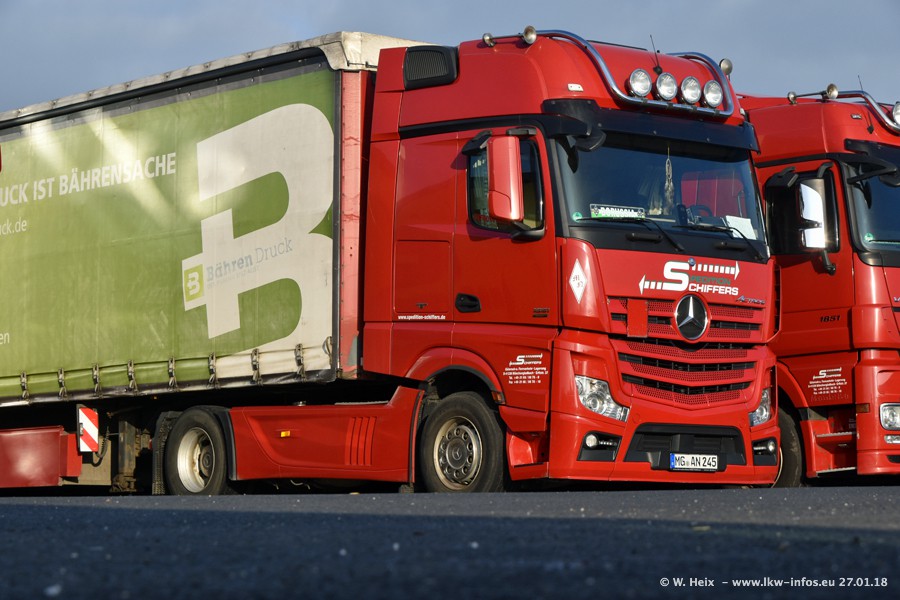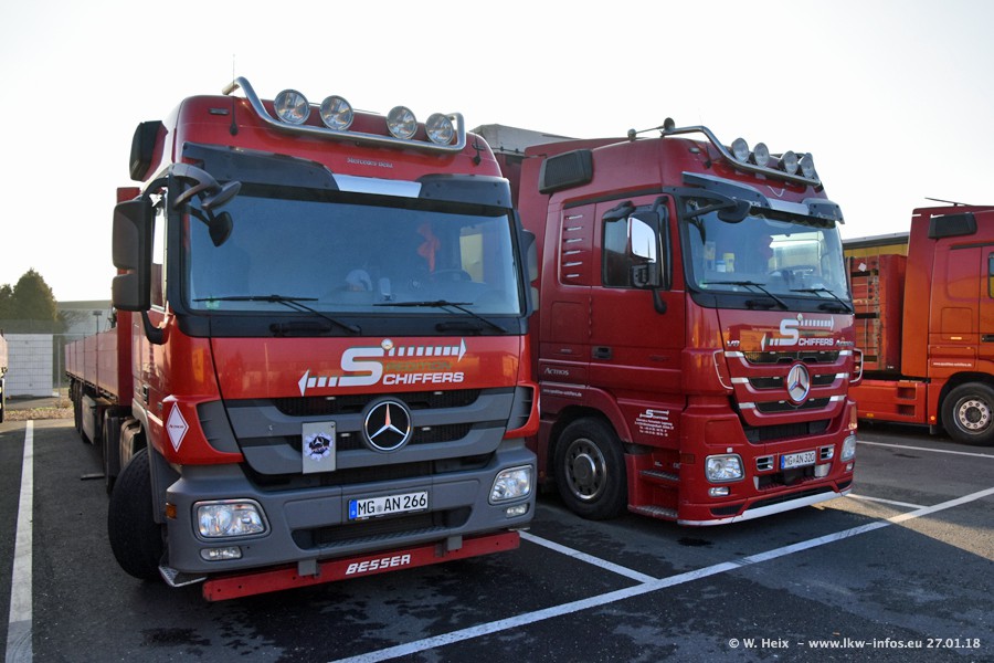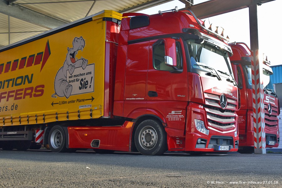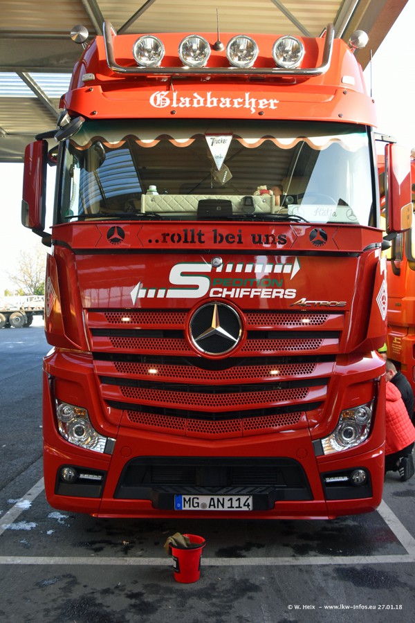Heute war ich zum ersten Mal bei Schiffers in Mönchengladbach. Es gibt insgesamt 28 LKW, alle von Mercedes-Benz. Im Fernverkehr sind überwiegend Actros 4 im Einsatz. Im Nahverkehr werden überwiegend Mercedes-Benz der Baureihen Actros MP2 und Actros 3 eingesetzt.