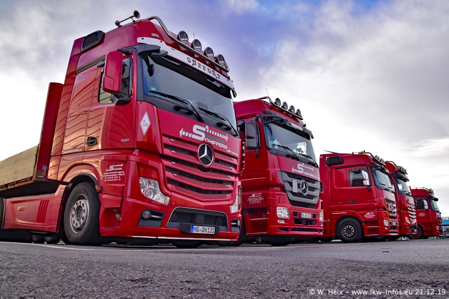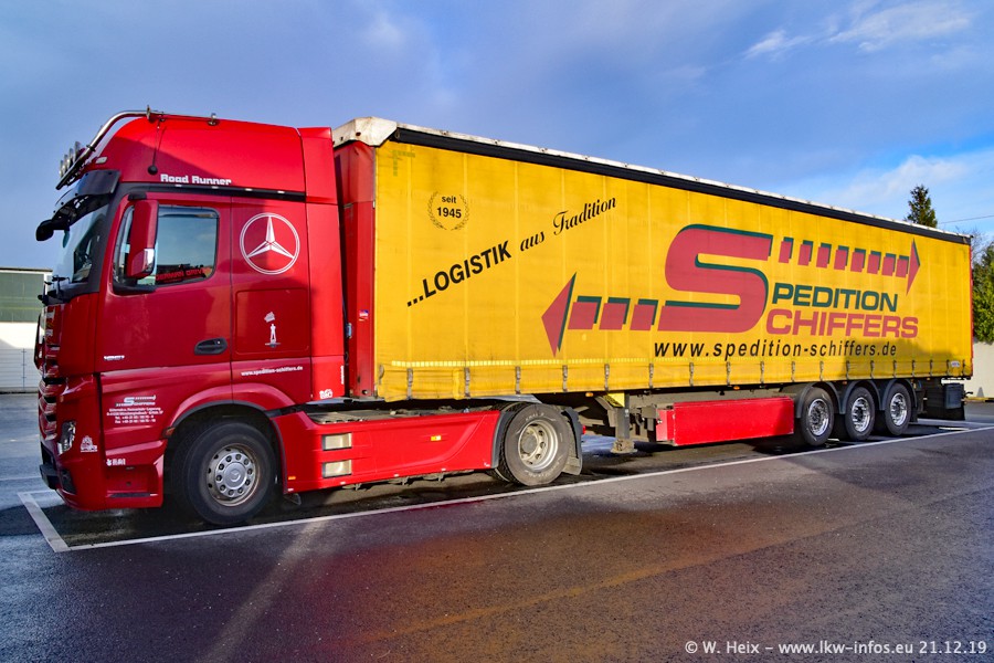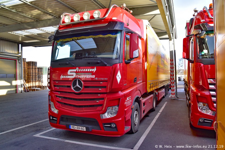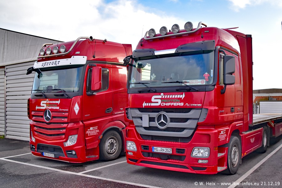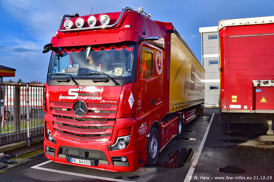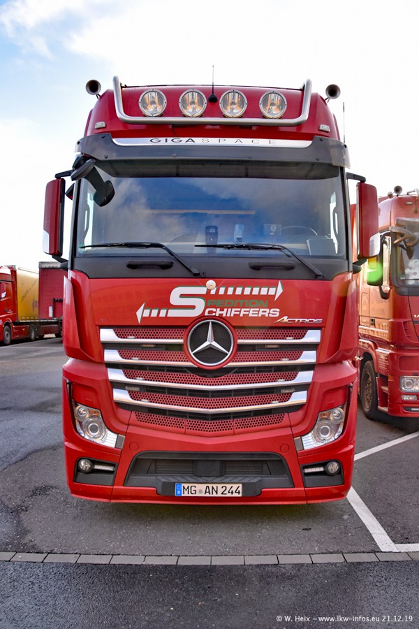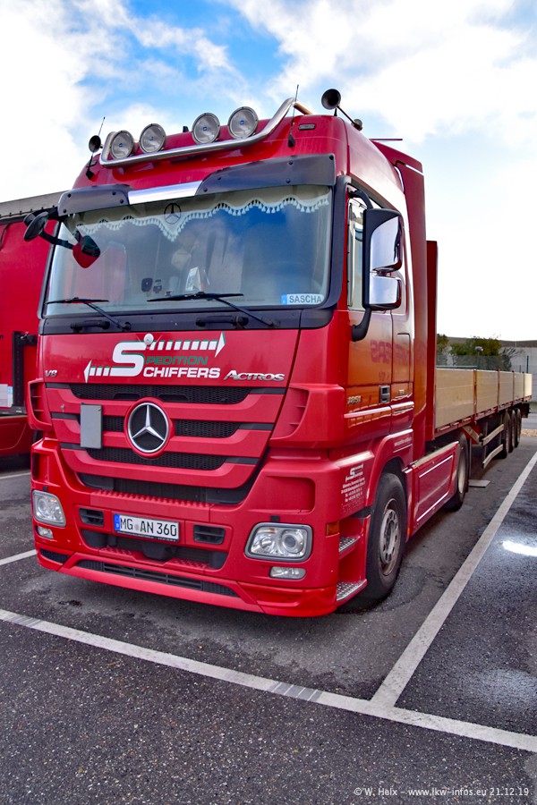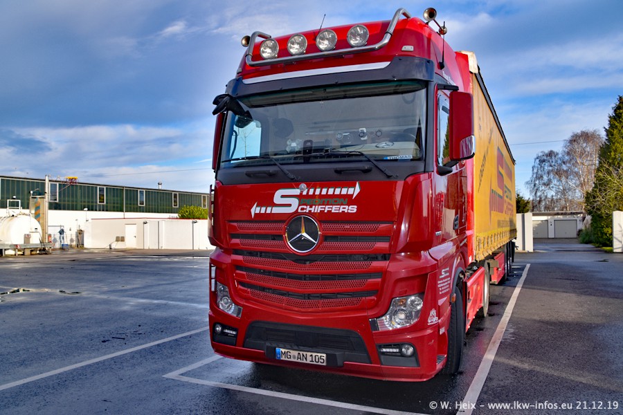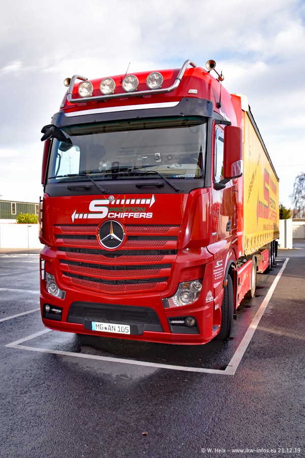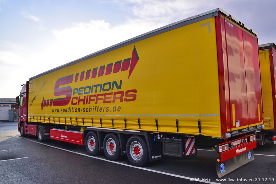 Dies war mein erster "Weihnachtsbesuch" bei Schiffers. Da die Feiertage in diesem Jahr so fallen, dass nur noch der Montag (23.12.) ein Arbeistag ist, haben schon viele Firmen ab dem 21.12. ihren Weihnachtsurlaub und bis Anfang Januar geschlossen. Und entsprechend hatte ich Glück, denn der gesamte Fuhrpark ist über Weihnachten zuhause in Mönchengladbach. Es gibt seit einigen Wochen den ersten Mercedes-Benz New Actros 4 (ohne Spiegel) im Fuhrpark. Der nächste kommt Anfang 2020.