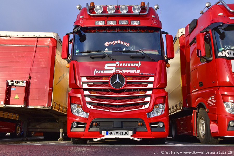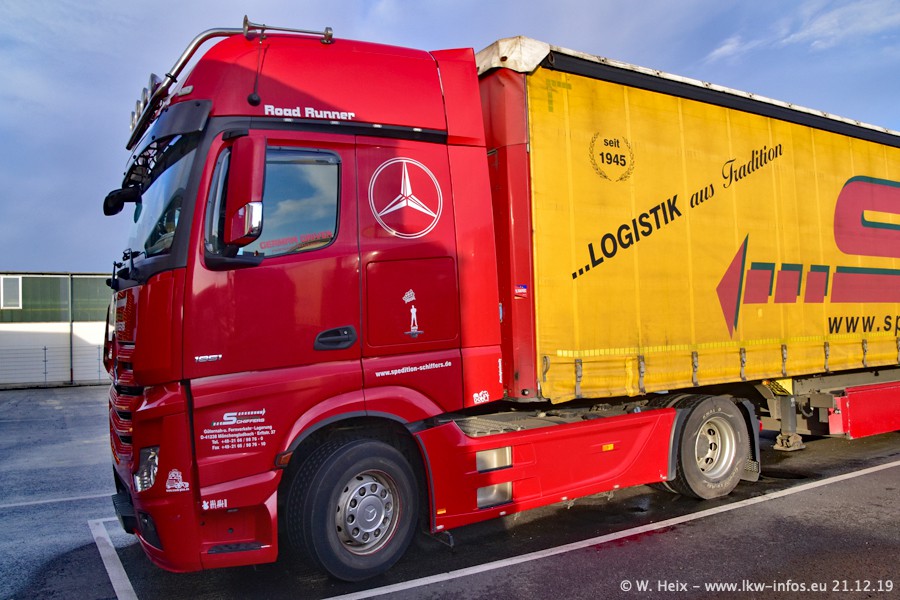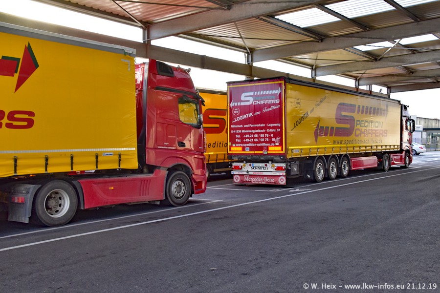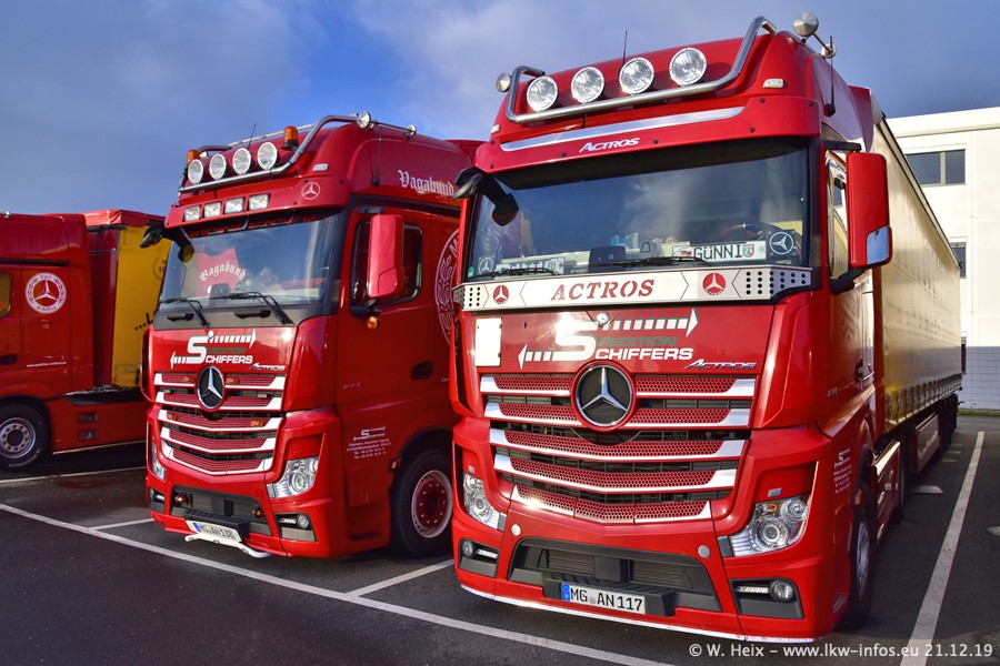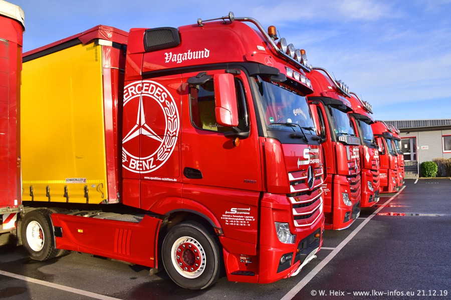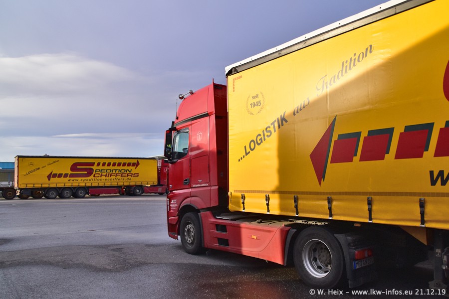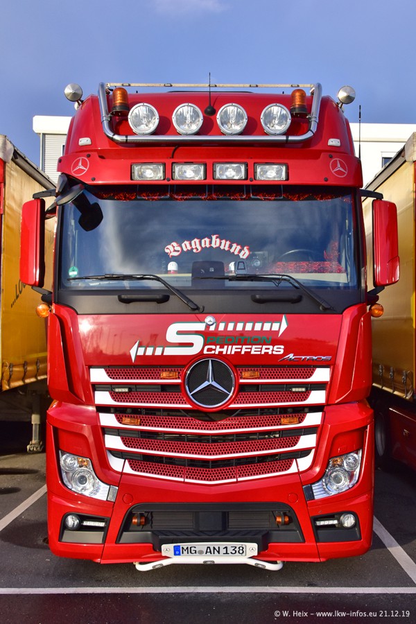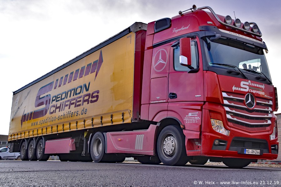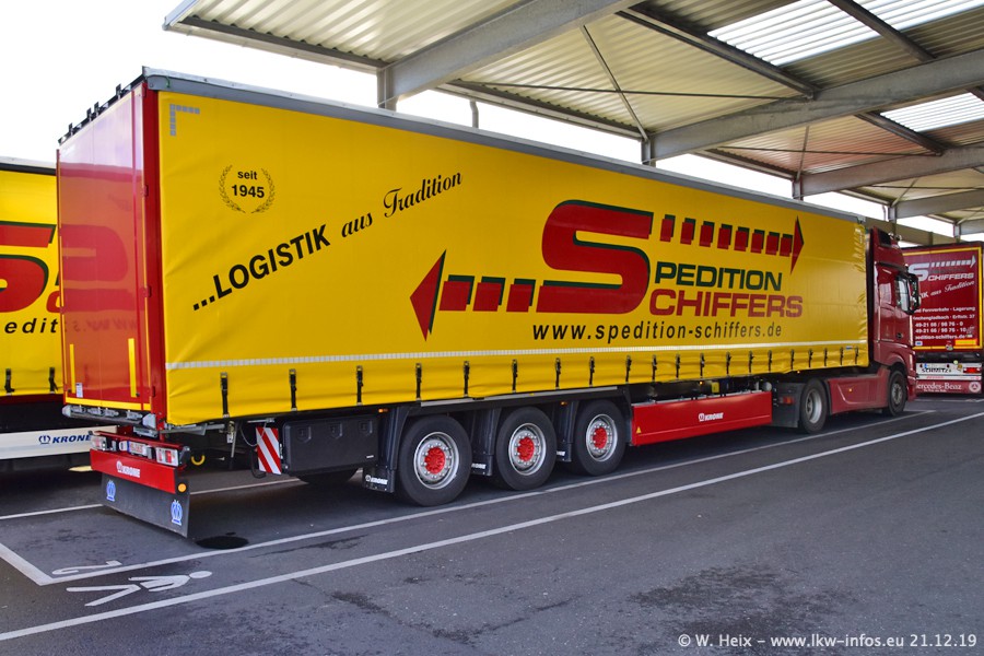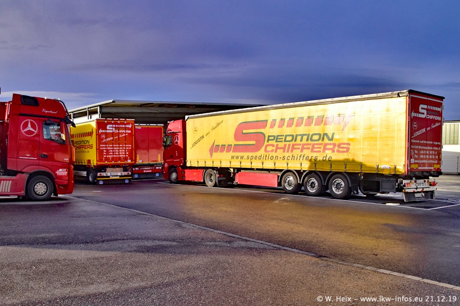Dies war mein erster "Weihnachtsbesuch" bei Schiffers. Da die Feiertage in diesem Jahr so fallen, dass nur noch der Montag (23.12.) ein Arbeistag ist, haben schon viele Firmen ab dem 21.12. ihren Weihnachtsurlaub und bis Anfang Januar geschlossen. Und entsprechend hatte ich Glück, denn der gesamte Fuhrpark ist über Weihnachten zuhause in Mönchengladbach. Es gibt seit einigen Wochen den ersten Mercedes-Benz New Actros 4 (ohne Spiegel) im Fuhrpark. Der nächste kommt Anfang 2020.