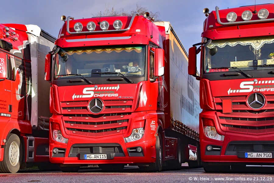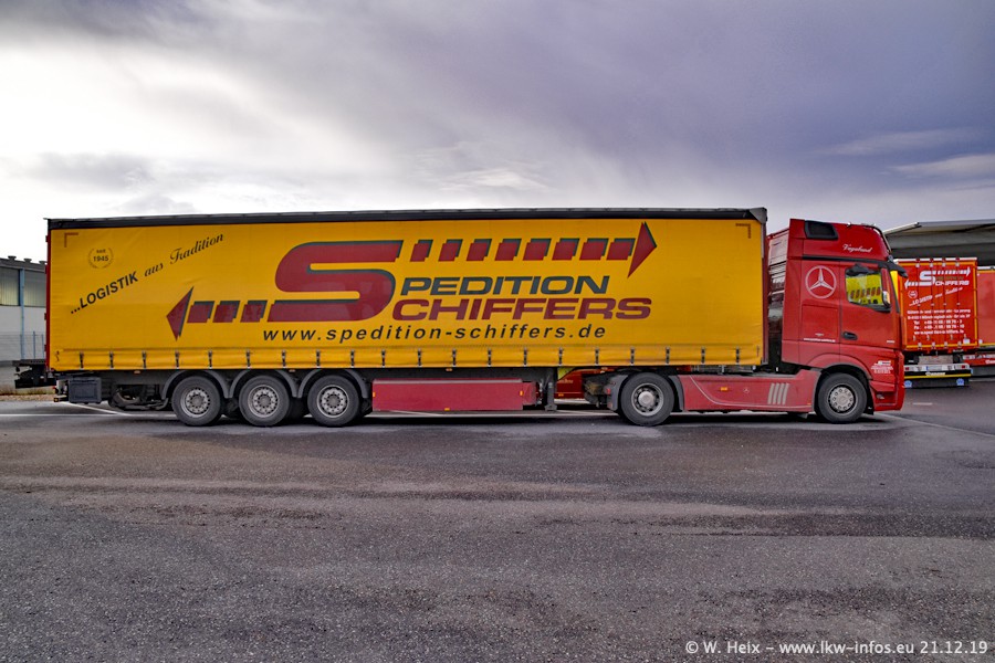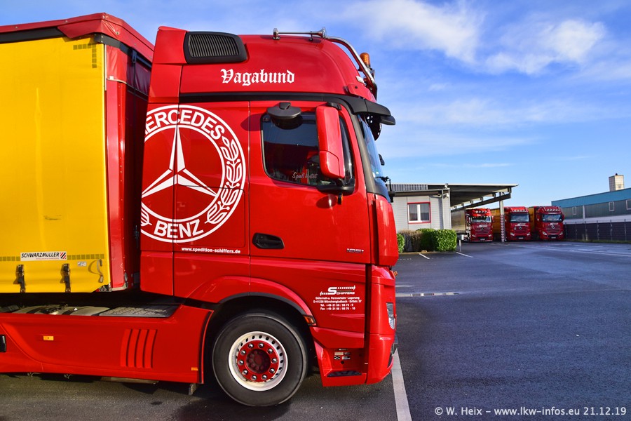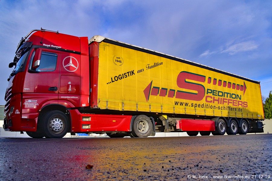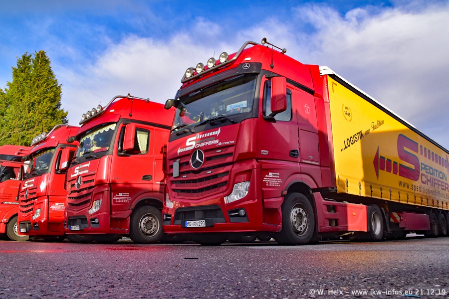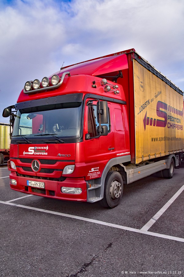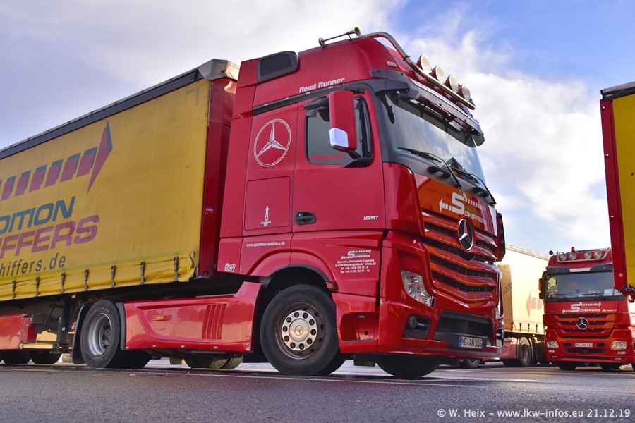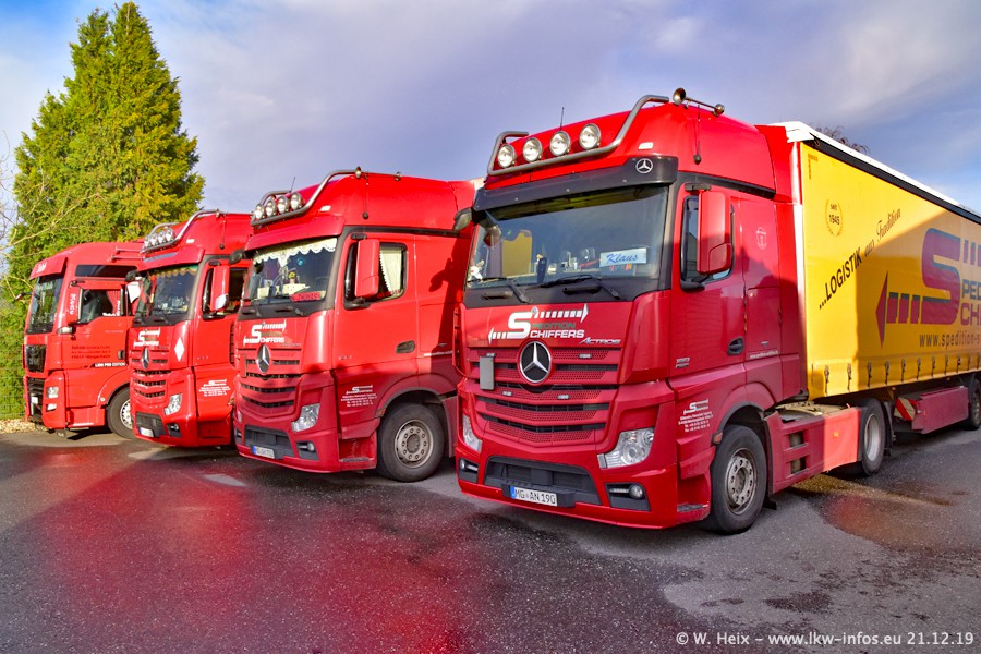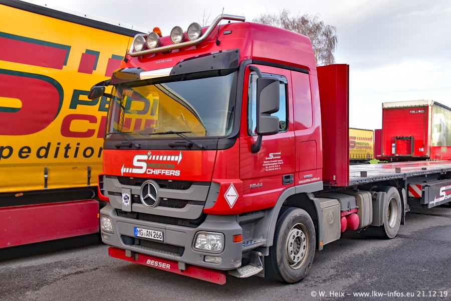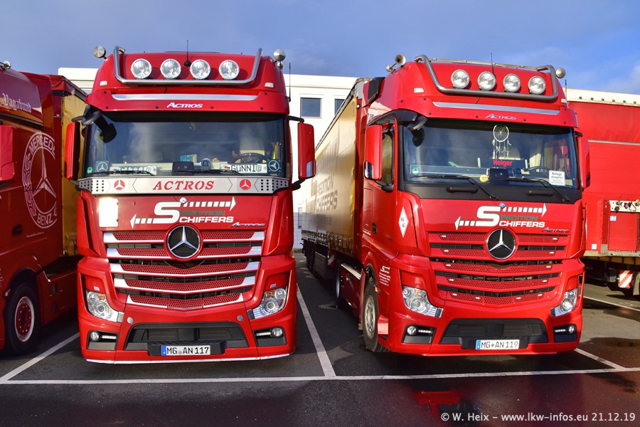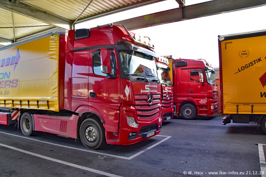 Dies war mein erster "Weihnachtsbesuch" bei Schiffers. Da die Feiertage in diesem Jahr so fallen, dass nur noch der Montag (23.12.) ein Arbeistag ist, haben schon viele Firmen ab dem 21.12. ihren Weihnachtsurlaub und bis Anfang Januar geschlossen. Und entsprechend hatte ich Glück, denn der gesamte Fuhrpark ist über Weihnachten zuhause in Mönchengladbach. Es gibt seit einigen Wochen den ersten Mercedes-Benz New Actros 4 (ohne Spiegel) im Fuhrpark. Der nächste kommt Anfang 2020.