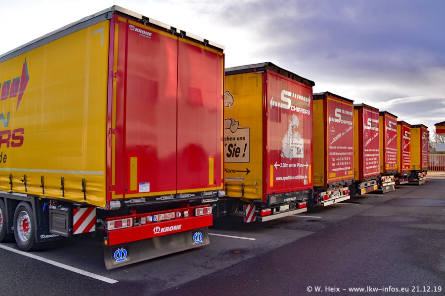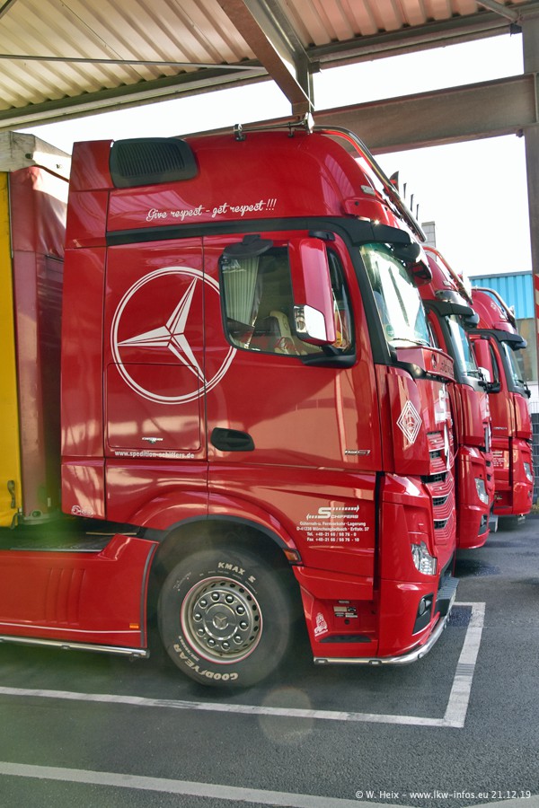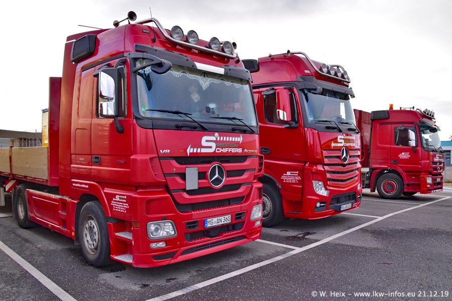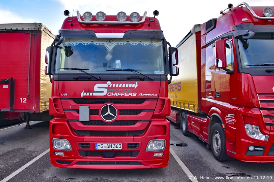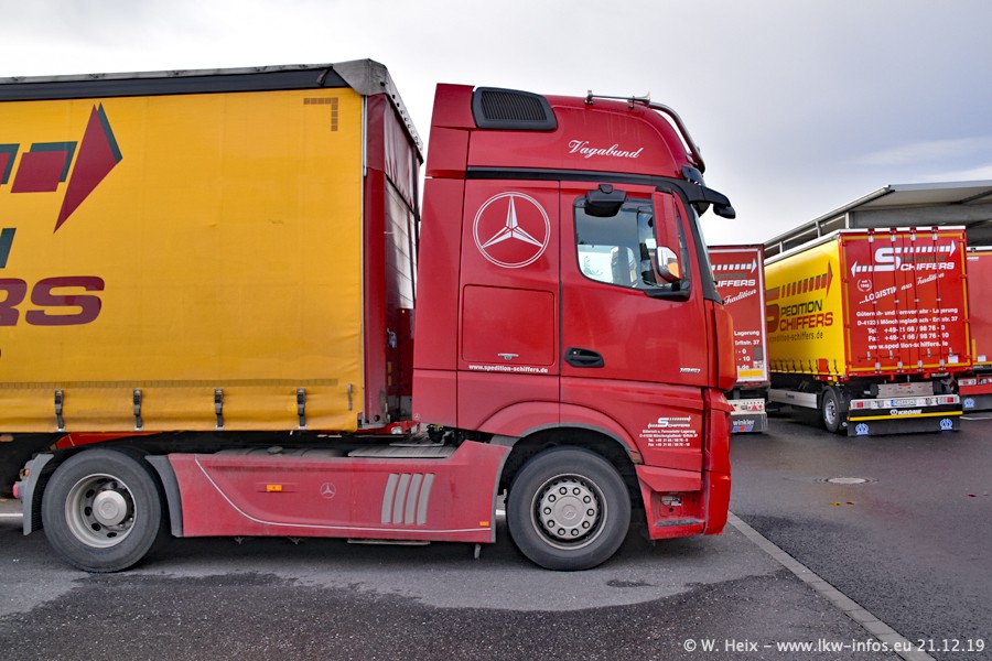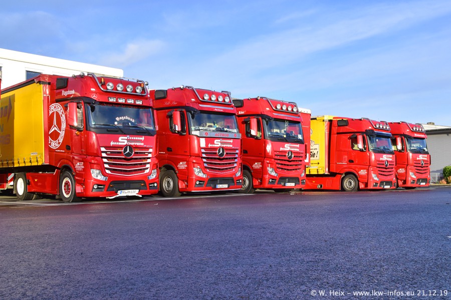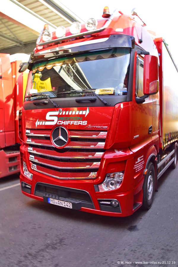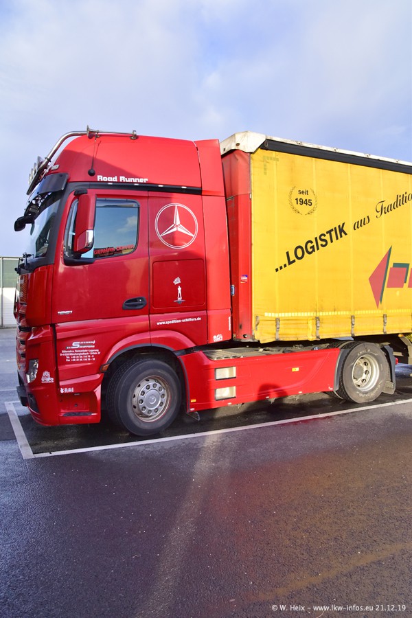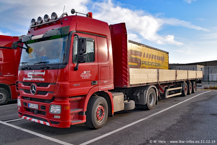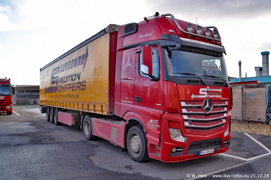 Dies war mein erster "Weihnachtsbesuch" bei Schiffers. Da die Feiertage in diesem Jahr so fallen, dass nur noch der Montag (23.12.) ein Arbeistag ist, haben schon viele Firmen ab dem 21.12. ihren Weihnachtsurlaub und bis Anfang Januar geschlossen. Und entsprechend hatte ich Glück, denn der gesamte Fuhrpark ist über Weihnachten zuhause in Mönchengladbach. Es gibt seit einigen Wochen den ersten Mercedes-Benz New Actros 4 (ohne Spiegel) im Fuhrpark. Der nächste kommt Anfang 2020.