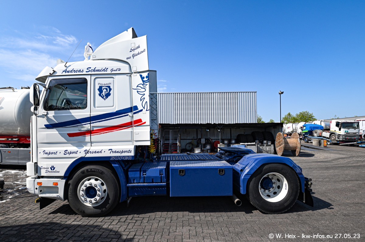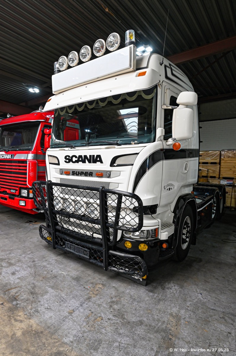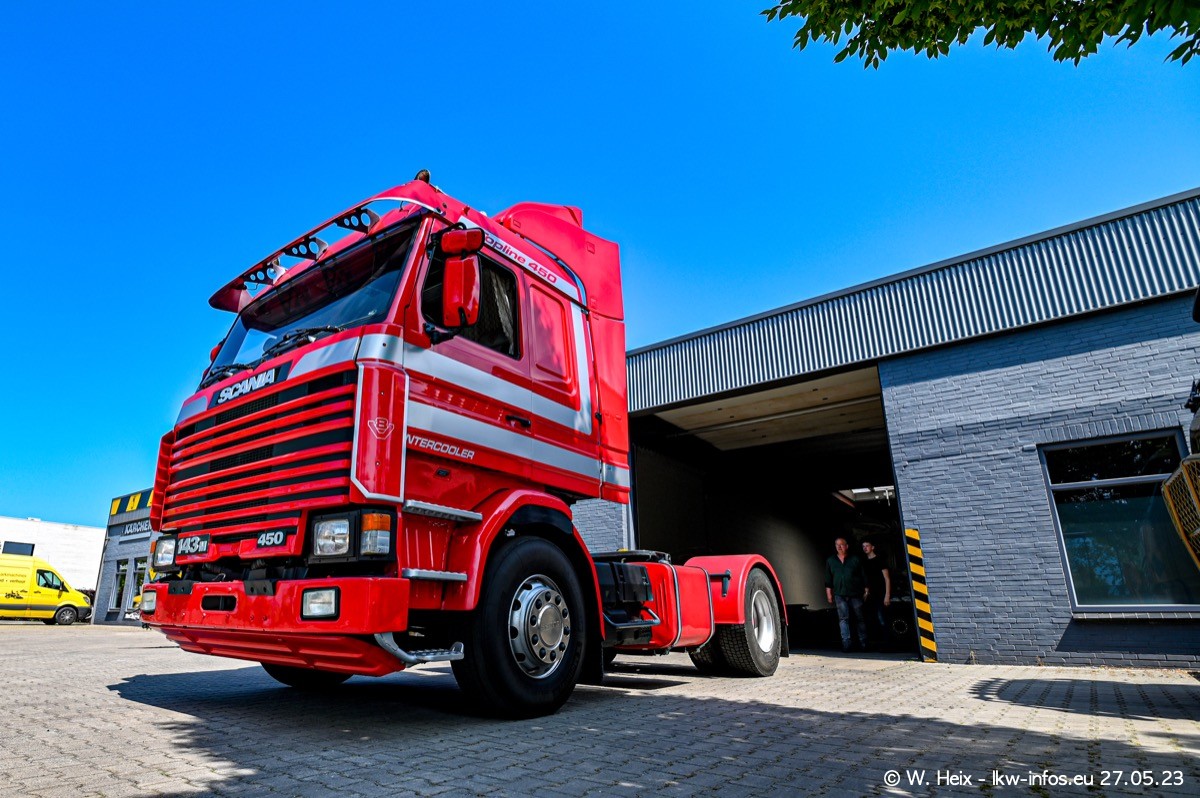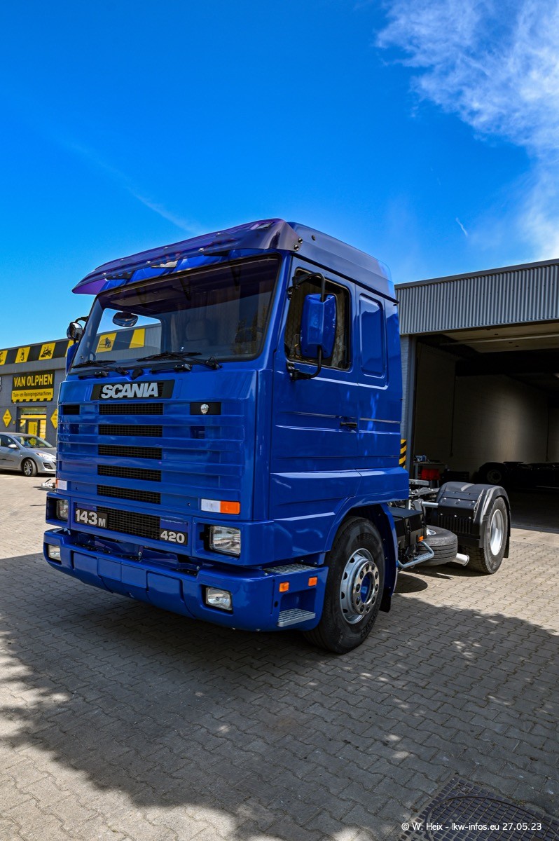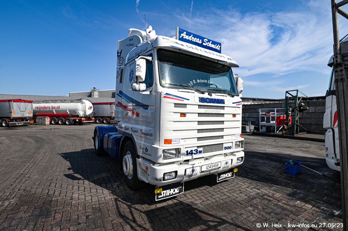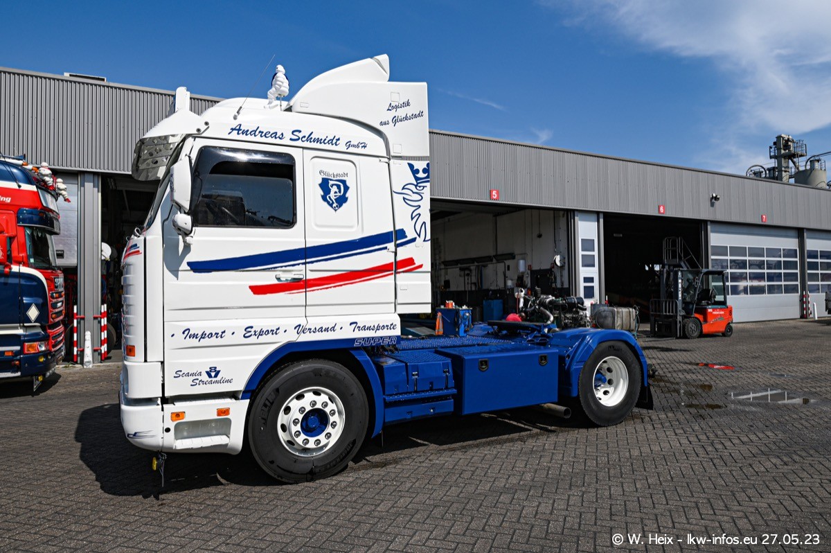 Es gab wieder einige schöne SCANIA V8 der verschiedensten Baureihen zu sehen. Einige von mir ausgewählte Fahrzeuge kamen für ein kleines Fotoshooting und kleine Rundfahrten nach draußen, so wie ich es inzwischen mit Tom Reijnders immer mache. Einen Film gibt es auch wieder, zu finden auf meinem YouTube-Kanal. Im Film sind es diesmal zwei SCANIA 143 V8 Streamline, der SCANIA 143 V8 Topline vom letzten mal, ein SCANIA 144 V8 und ein SCANIA R 620 V8. Diesmal war das Wetter endlich mal perfekt für Film/Video und Fotos.