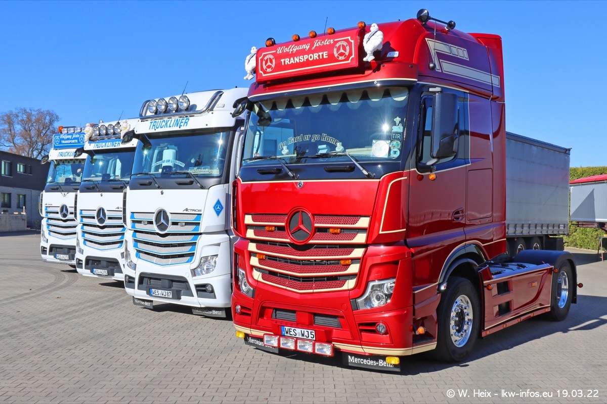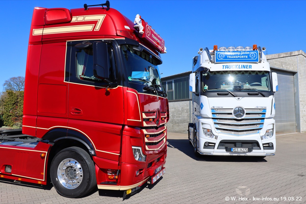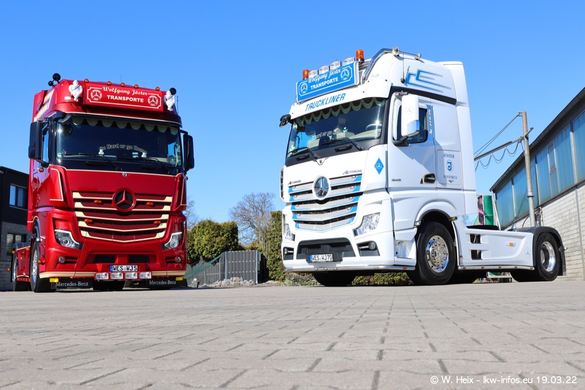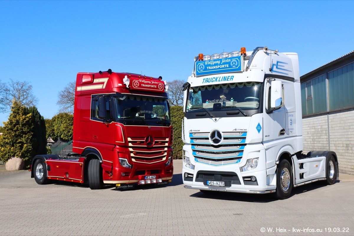Die Firma Jöster Transporte hatte mich zu einen kleinen Fotoshooting eingeladen. Der Furpark besteht aus sieben LKW, das sind 3 DAF XF und vier Mercedes-Benz Actros. bis auf eine Zugmaschine sind alle weiß lackiert. Der rote Mercedes Benz Actros 4 ist rund einen Monat alt und das Highlight im Fuhrpark. Den gräßten Teil der Bilder habe ich auf den eigenen Hof gemacht und den roten und den weißen Mercedes-Benz Actros haben wir auf dem Gelände des Nachbarn, der Firma Potthoff, gemacht, die das Gelände für das Fotoshooting zur Verfügung gestellt hat. Das war ein schöner Platz für schöne Fotos..... Danke an die Firma Jöster für das tolle Fotoshooting!